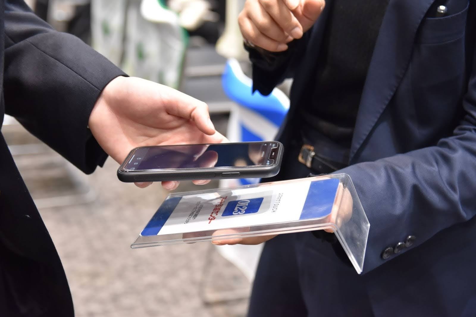 今回導入されたMEET EASY ACCESSは、MEET株式会社が独自開発しビジネスモデル特許申請済みのシートタイプのMEETです。スマホを覆うサイズで、どんなスマートフォン(NFC対応端末)でもかざすだけで即コンテンツにアクセスすることができるため、ブースに立ち寄る時間がない学生とも、マッチングの機会を損失することなくコミュニケーションの場を生み出すことができました。