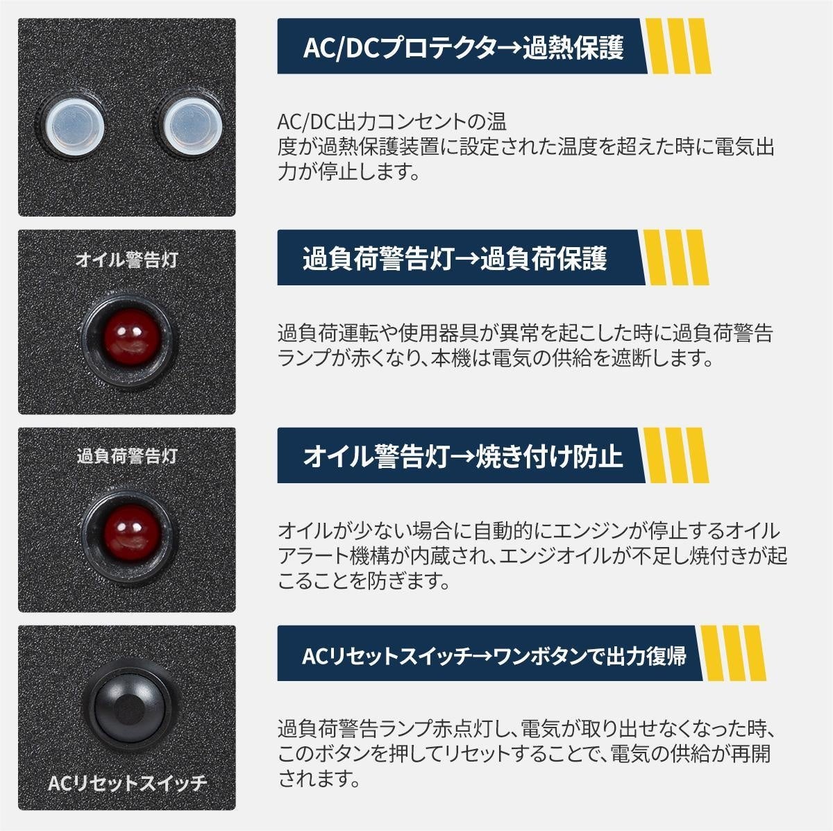 この2つのモデルは、安全性と利便性を追求し、厳しい品質基準をクリアした製品です。過負荷保護やオイル不足保護などの安全機能を標準装備しており、安定した電力供給を保証します。JESIMAIKはこれらの製品を通じて、安全で信頼性の高い電源ソリューションを提供し続けることを約束します。災害対策や停電時においても、これらの発電機があれば、あなたのビジネスや家庭生活を強力にサポートします。