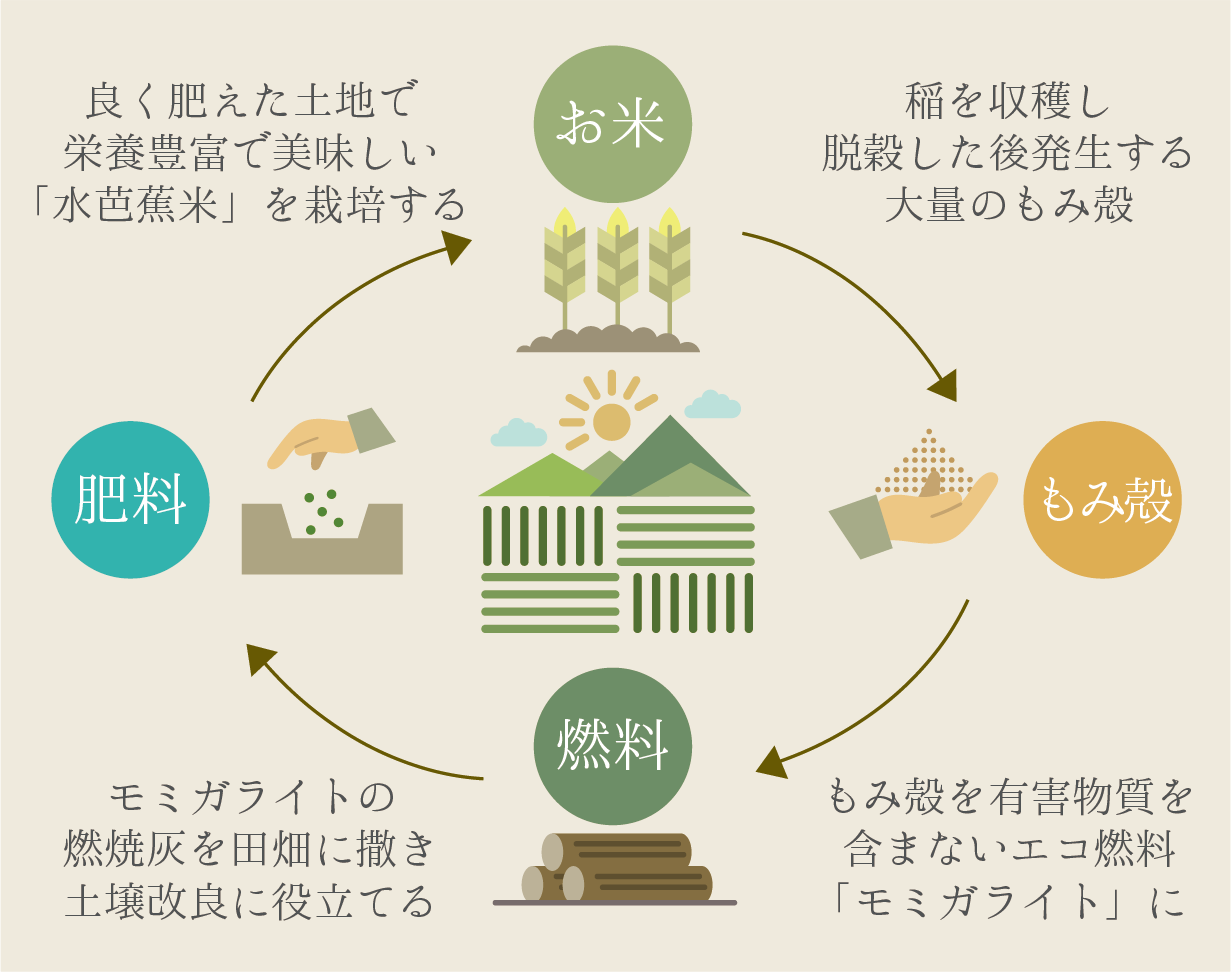 農業者自身が貴重な植物資源である “米ぬか” や“もみ殻”などを無駄なく活用していく取り組みに参画することが、持続可能な農業を推進する近道であると考えています。