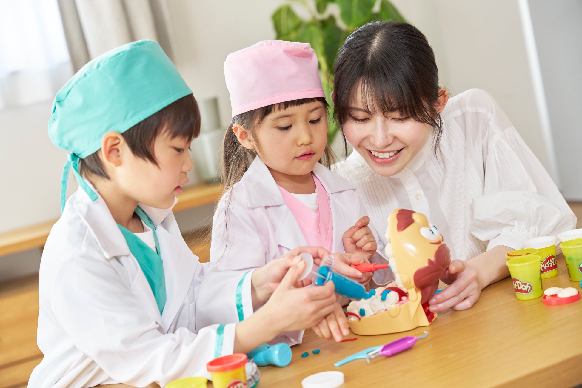 子どもが夢中になって遊ぶ“ごっこ遊び”。お店屋さんやお医者さんなどの“なりきり”体験は、親子のコミュニケーションを深める定番の遊びとして支持されています。今回の調査では、「子どもの成長に役立ちそう」「一緒に遊ぶと癒される」といった声も多く、子どもだけでなく親にとっても“価値ある時間”として受け止められていることが明らかになりました。“ごっこ遊び”をさらに楽しく、リアルにしてくれるのが、色や形を自由に作れる「ねんど」。歯をひとつひとつ作って「歯医者さんごっこ」、パスタをくるくる絞り出して「パスタ屋さんごっこ」など、“つくる”プロセスが加わることで、遊びの世界がぐっと広がります。子どもたちの自由な発想を大切にしながら、「ごっこ遊び×プレイ・ドー」は、これからの親子時間にぴったりの遊び方として、新しい可能性を広げていきます。