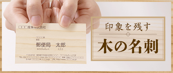 データ入稿でオリジナルの名刺印刷も可能。本物の木を使用した木の名刺も承ります。