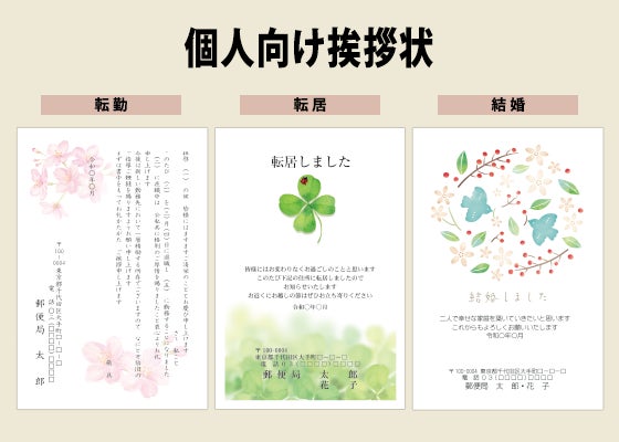 「個人向け挨拶状」転居・転勤・転職・結婚報告など節目のご挨拶に!