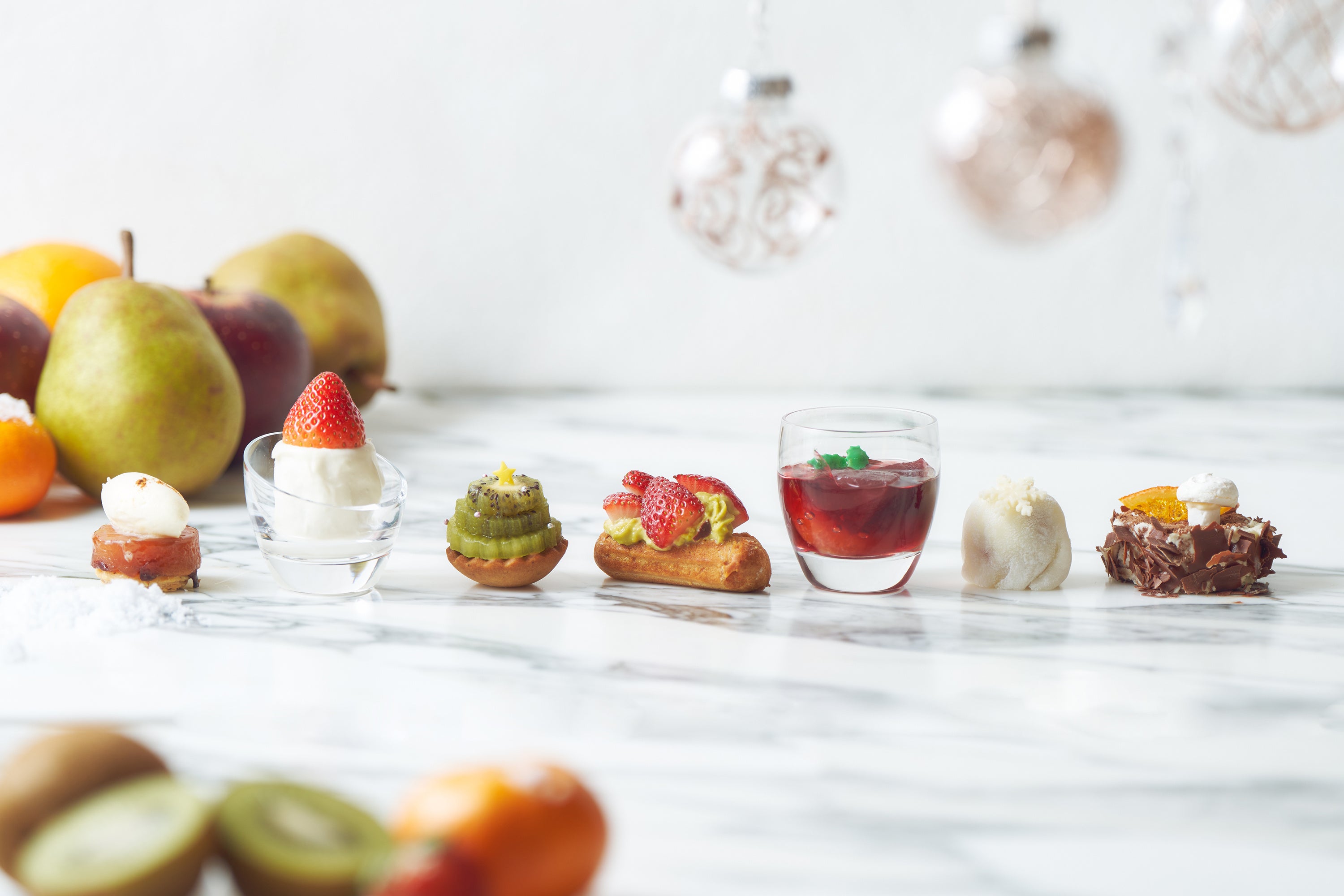 冬に旬を迎えるフルーツを全てのスイーツに取り入れながら、クリスマス気分を盛り上げるセレクションでお届けいたします。