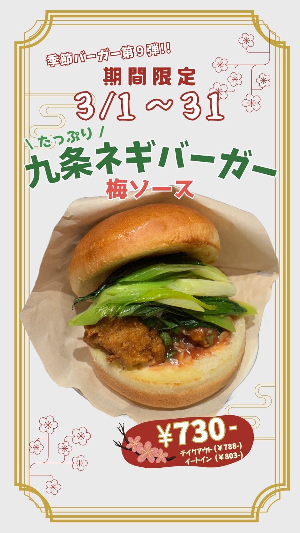 春始動!京都発、九条ねぎバーガー梅ソースが期間限定で新発売