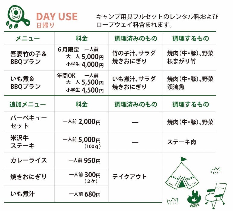 【6/17〜 天元台で夏休みにオススメの新サービス・手ぶらでキャンプ】標高1,350mの高原で、初心者でも安心なアウトドア体験を!※1日5組限定