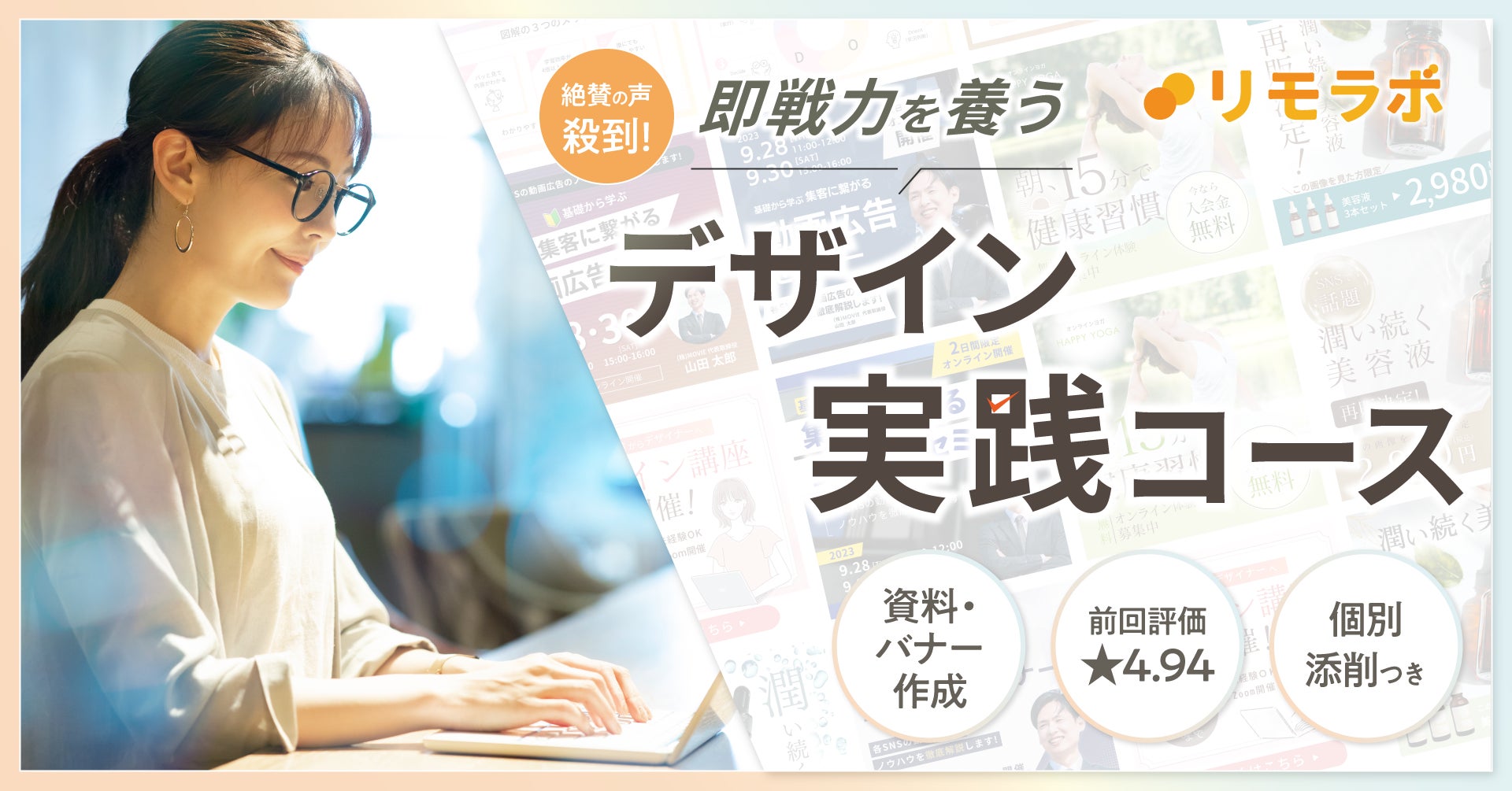 リモラボの「デザイン実践コース」は、どの業界でも必須となる「デザイン」スキルを、実践重視で学ぶコースとして誕生しました。