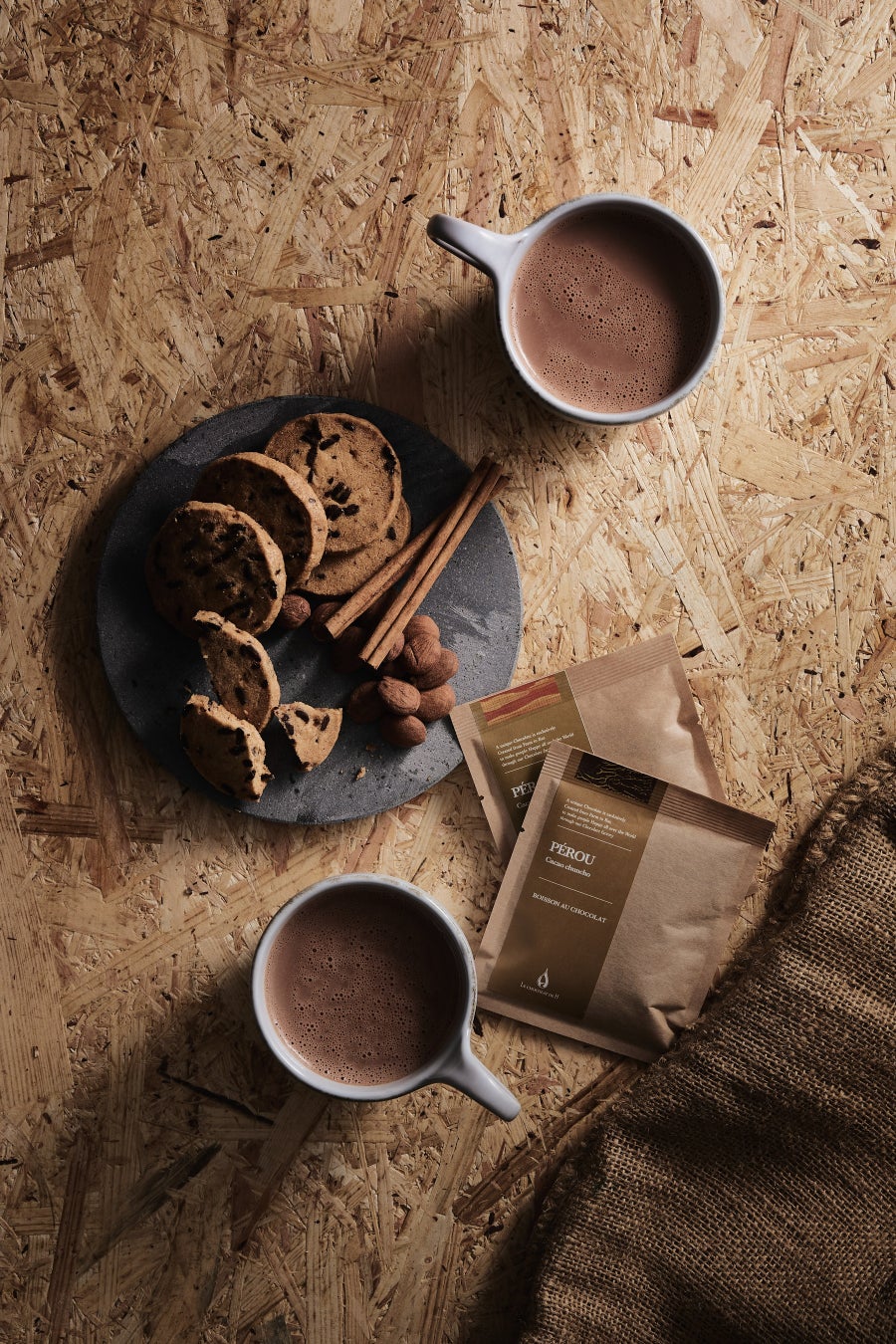 FARM to BARショコラのショコラショーをご自宅で手軽に楽しめるように、1カップずつの小袋にしました。