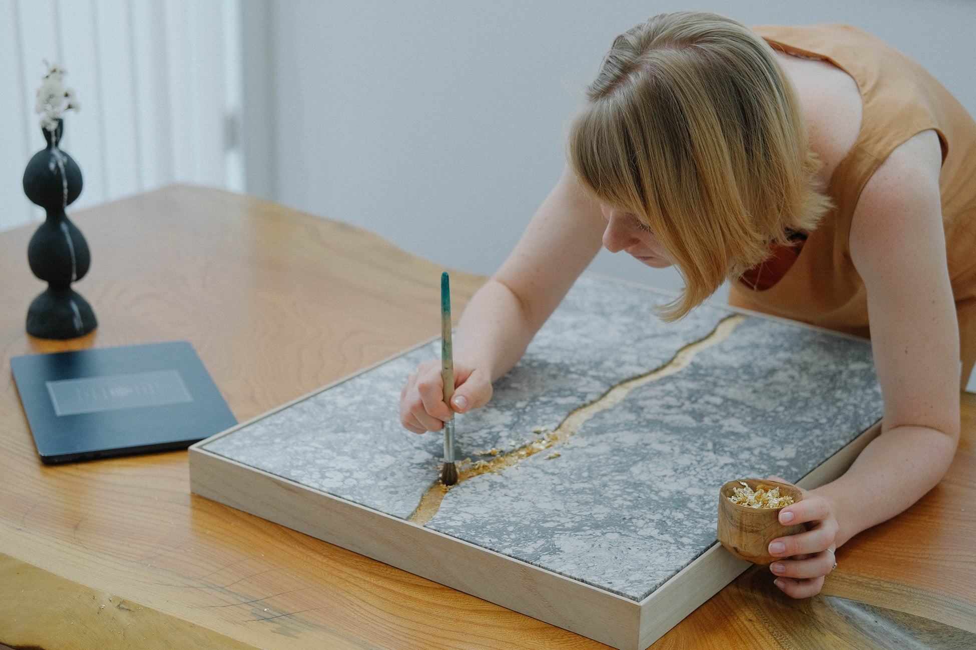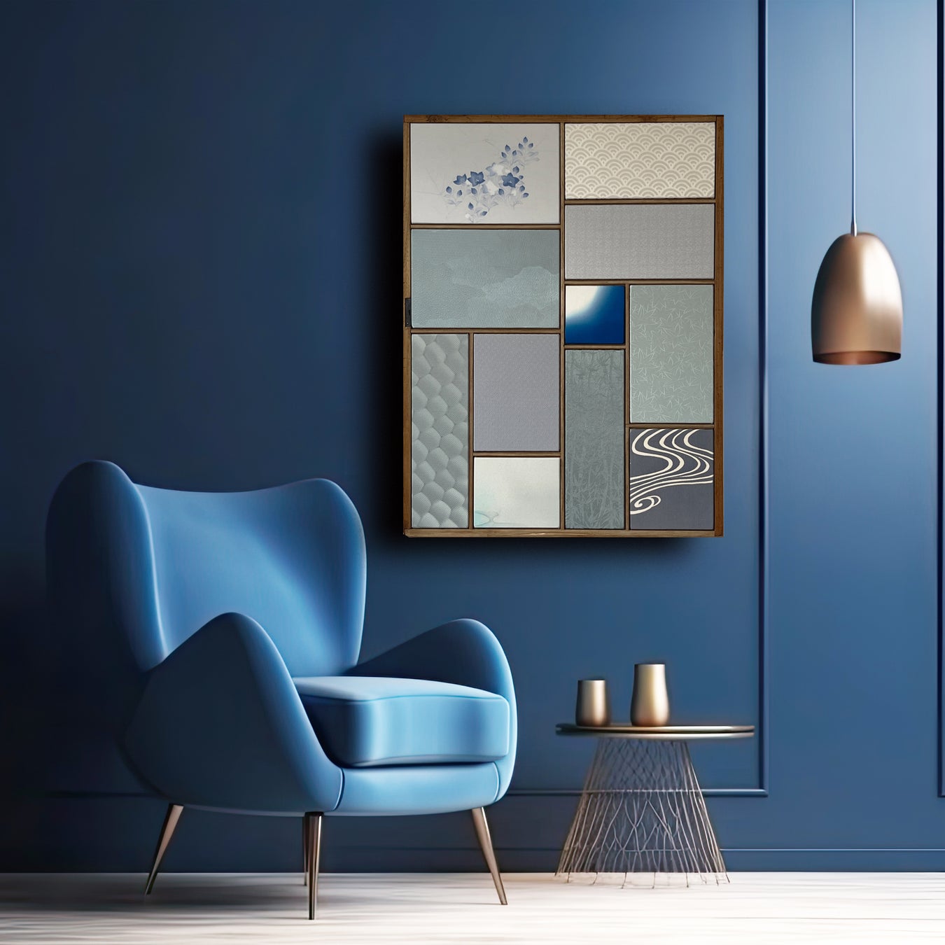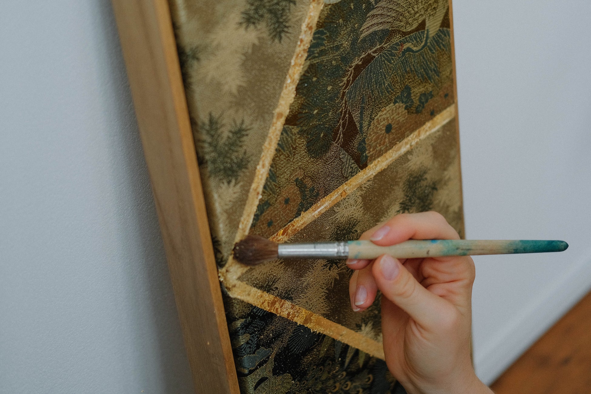 A European artist, who is both a qualified kimono master and a creative director, travels across Japan, spending immense time and effort selecting pre-loved kimonos to be re-created as artworks. The artist also repurposes antique paulownia wood chests for framing, aiming for a completely upcycled creation.