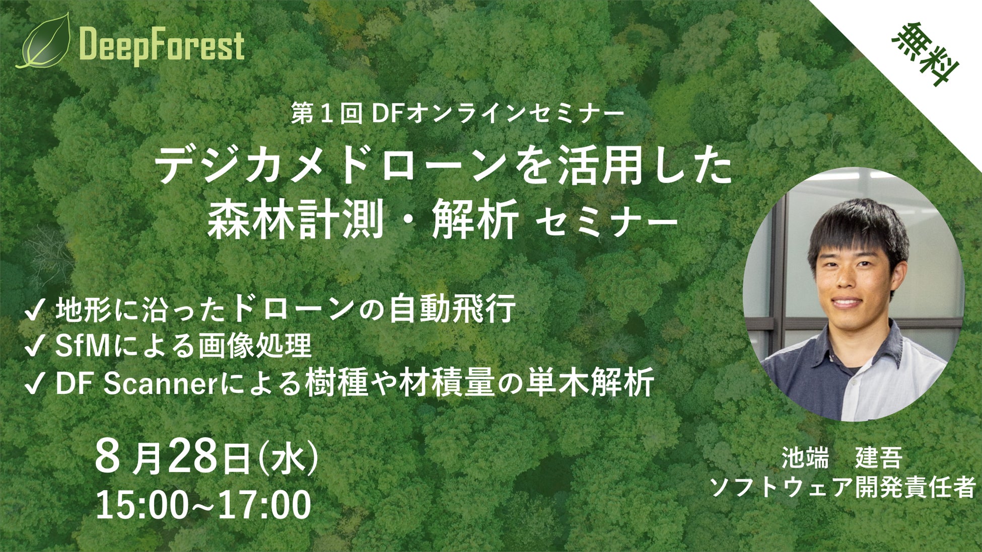なお8月28日には第1回のオンラインセミナーを予定しており、市販のデジカメドローンを活用した森林でのドローンの飛行や森林解析の方法について講習を行います。