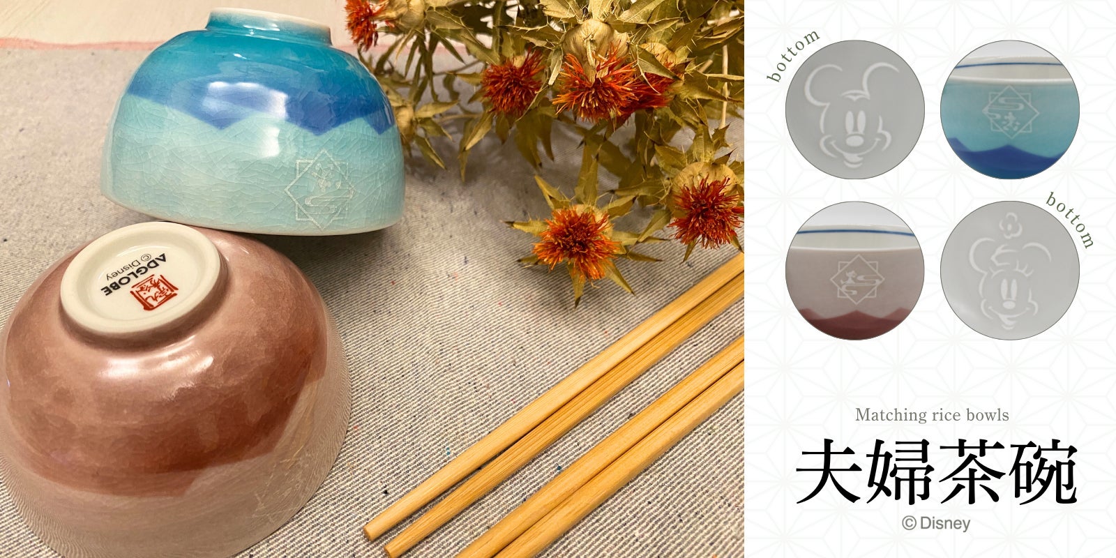碗の内側には、銀箔押しによりミッキーマウスとミニーマウスの表情がきらりと輝き、