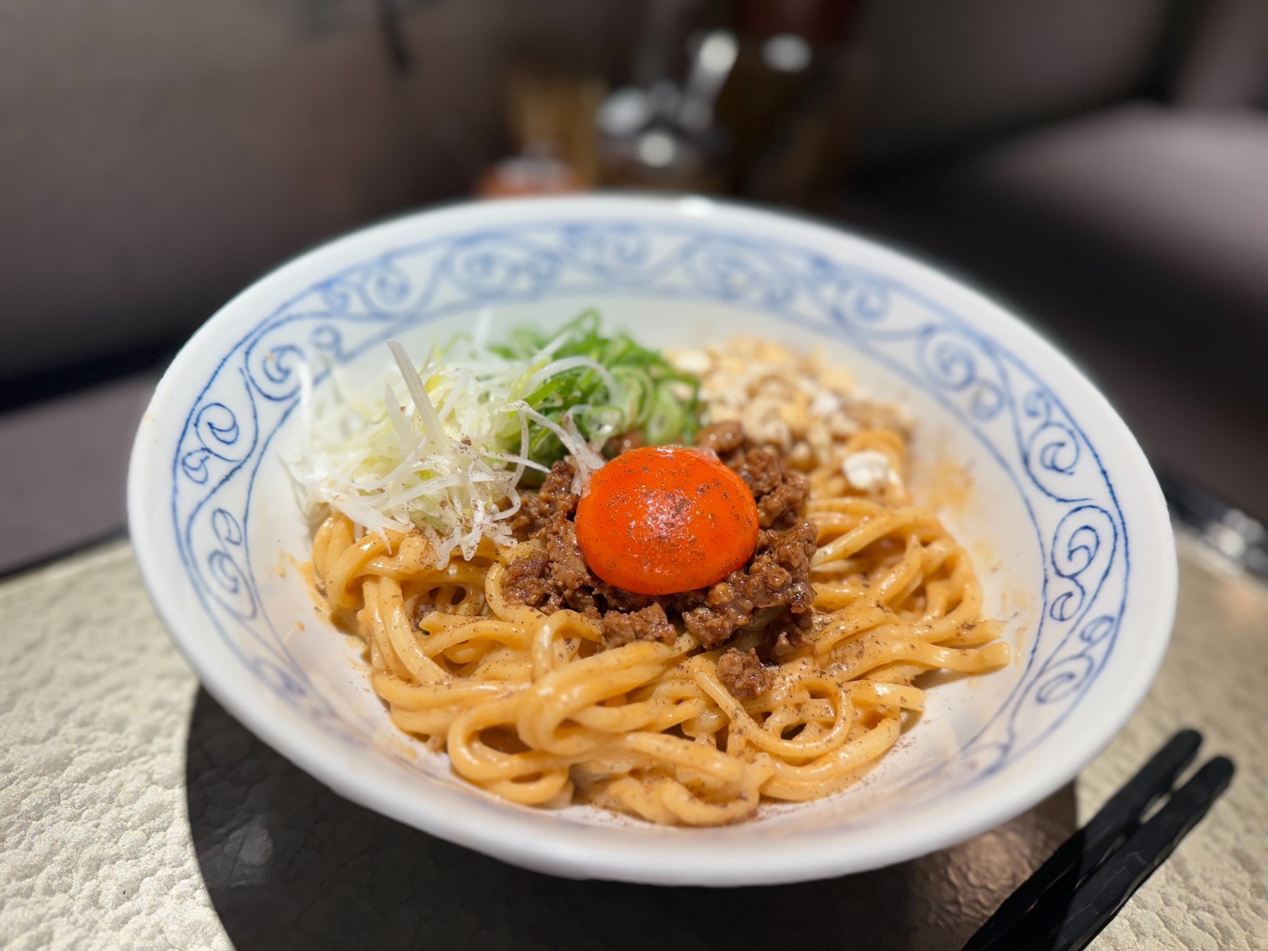 2022年10月24日オープンした「大阪まぜそば秀吉」は、大阪らしさをコンセプトに、牛すじやホルモンを具材としたまぜそばをご提供してまいりました。店内も、大阪城の中をイメージした四季花鳥図風の黄金の壁紙を使用し、カウンター席 8席と、2人掛けテーブル 2つの小規模店舗でありながら、ゴージャスな雰囲気でゆっくりお食事時間をお過ごしいただけるお店として、多くのお客様にお喜びいただきました。