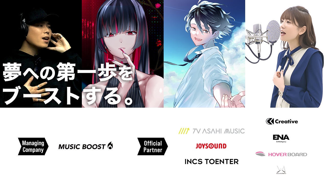株式会社ミュージックブースト(本社:東京都渋谷区、代表取締役:篠原正之)は、「NEW VOCALIST PROGRAM」の事業パートナーとして、株式会社テレビ朝日ミュージック(本社:東京都港区、代表取締役:吉田真佐男)、株式会社エクシング(本社:愛知県名古屋市、代表取締役:水谷靖)、株式会社インクストゥエンター(本社:東京都渋谷区、代表取締役:田村優)、CK Creative株式会社(本社:東京都新宿区、代表取締役:尾形圭一)、株式会社EntNet Agency(本社:東京都港区、代表取締役:佐藤鉄兵)、株式会社ホバーボード(本社:東京都渋谷区、代表取締役:堀田明)、株式会社サウンドバーン(本社:東京都渋谷区、代表取締役:高藤大樹)との提携を発表しました。