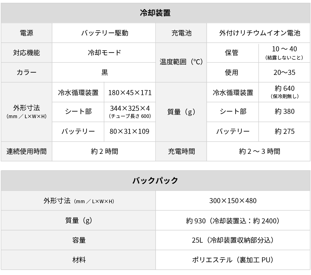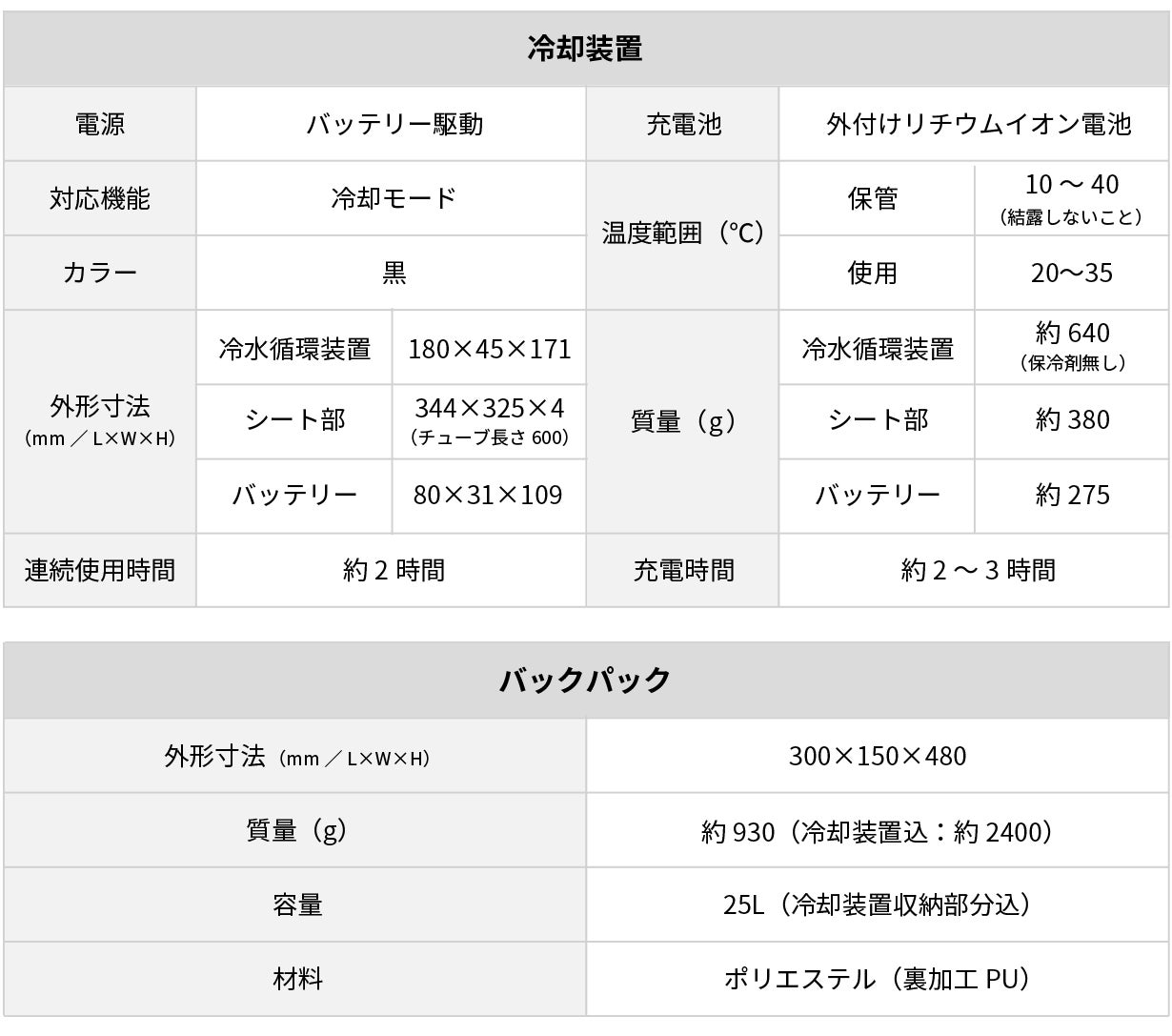 また、当社の実験では35℃の環境にバックパックを放置し、2時間の連続運転を行ったとき、バックパック背面の温度が90分以上28℃以下に保たれることを確認※3しました。