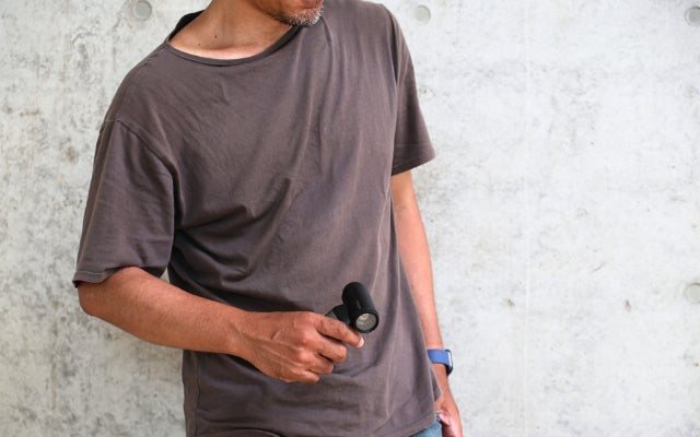 長さ15cm×306gのコンパクトボディは、ジーンズの後ポケットにもすっきり収まるサイズ感。バッグに入れるまでもなく、すぐ取り出して使用可能です。