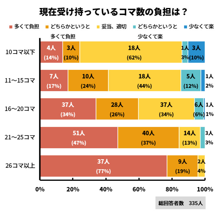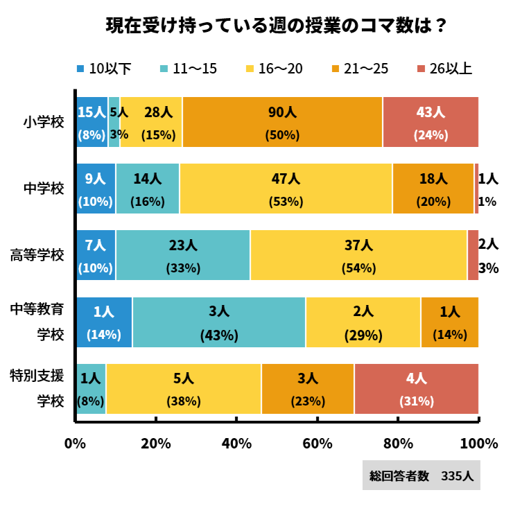 全国の学校に勤める教職員の方に、授業の持ちコマ数の現状とそれに対する意見を聞きました。
