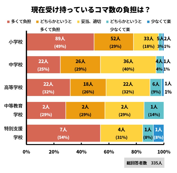 小学校教員の8割、全校種で約半数が現状は負担と回答。校種によって異なる実情が。
