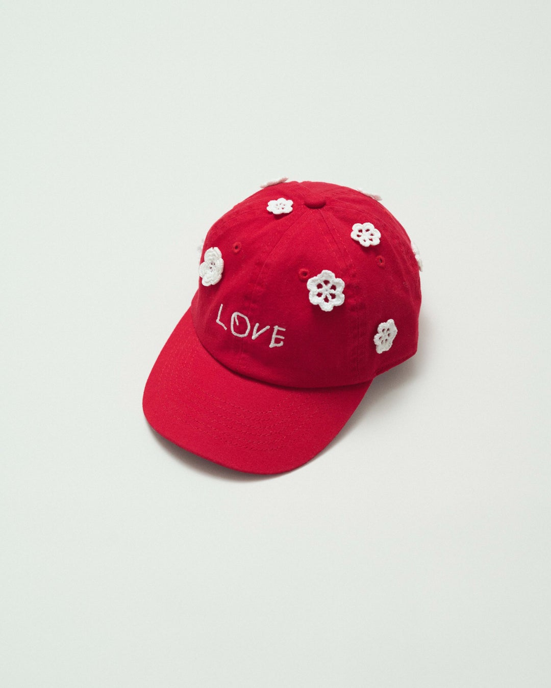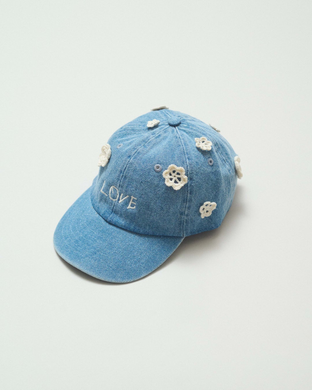 愛光女子学園の園生たちが制作したクロッシエ・レースの小花モチーフを散りばめ、手描きの「LOVE」ロゴを刺繍した子供用キャップ。ハンドメイドのモチーフが生み出す温かみと小さなレースが醸す可愛らしさが魅力の特別なアイテムです。レッドの生地には白のレースを。そしてデニムには生成りのレースをあしらいました。ロゴの「LOVE」には愛光女子学園の頭文字である「愛」と、園生たちの未来への愛と希望を託しています。