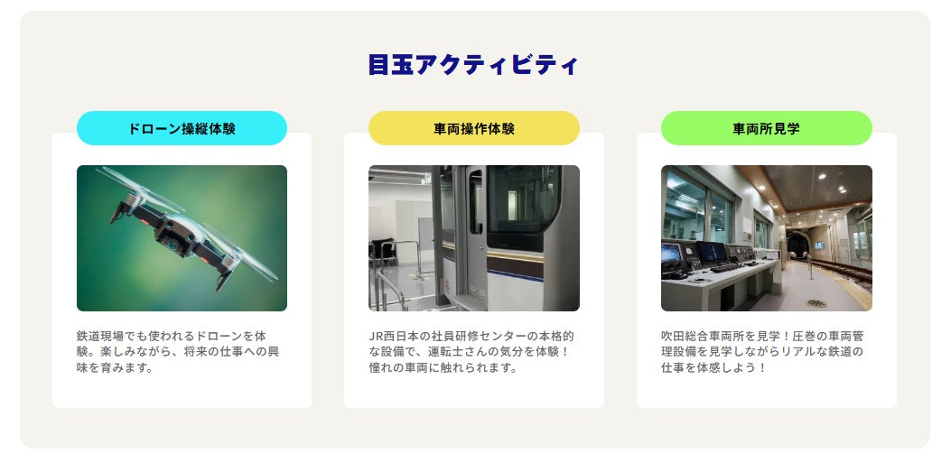 夏休み限定の短期学童(サマープログラム)として実施される本実証実験では、JR芦屋駅構内のスペースを活用し、当社の送迎サービス「hab」により、ご指定の場所からJR芦屋駅まで安全に送迎を行います 。プログラムでは、JR西日本の社員研修センターや吹田総合車両所といった普段は立ち入ることのできない特別な場所で、本物の鉄道技術や最先端の設備に触れる機会を提供します。機器操作体験や車両所見学、ドローン操縦体験などを通じて、お子様たちの好奇心を刺激し、将来の夢を見つけるお手伝いをさせていただきます 。