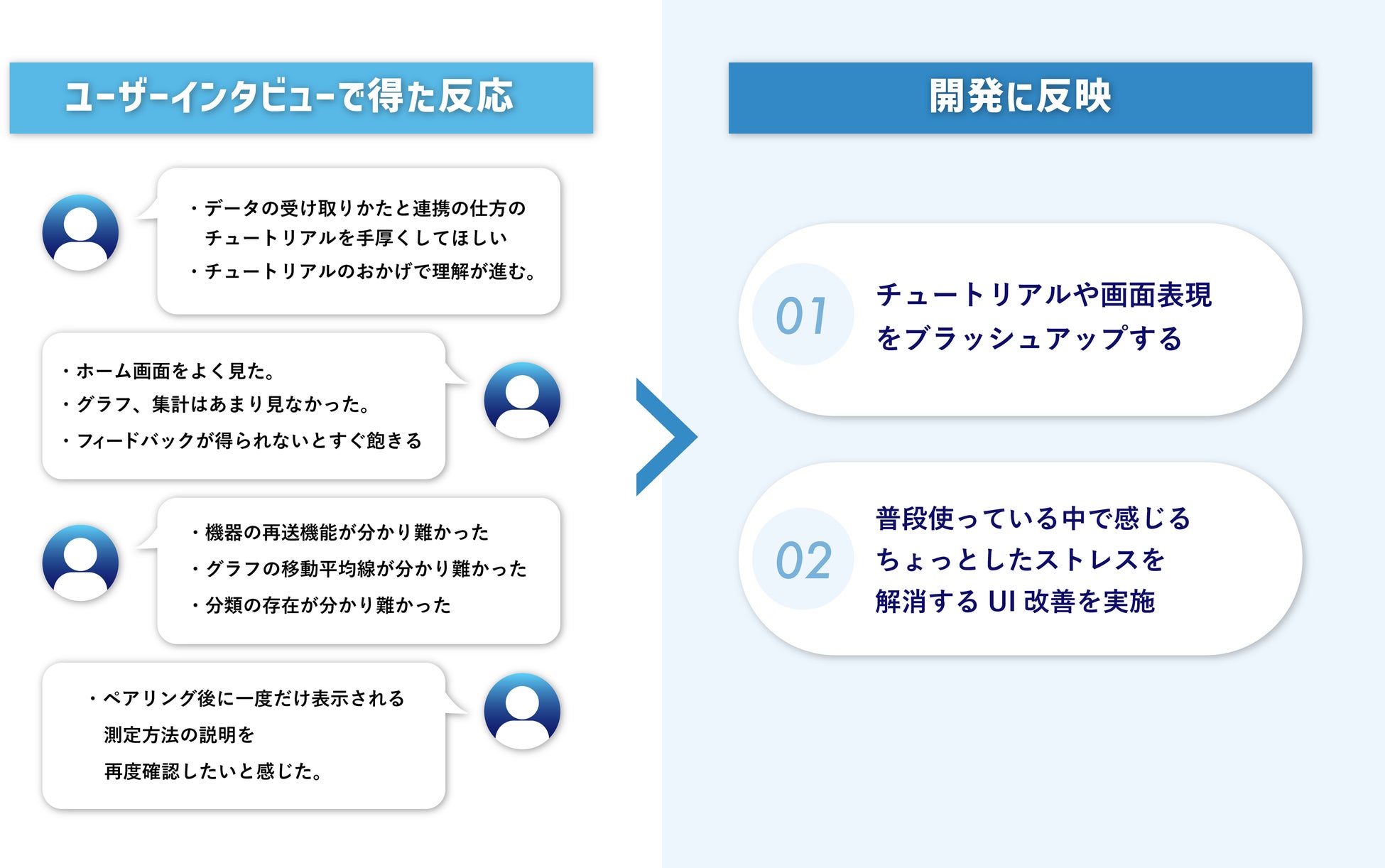 健康維持のためには毎日からだの状態を知ることが必要ですが、開発中のユーザーインタビューなどから毎日の計測とそのデータの管理が大変で途中で挫折してしまうケースも多いことが明らかになっていました。Health Scanはそんなユーザーをサポートするためにできるだけ簡単に手間なく