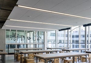 その他にも、多様な使い方が可能な憩いのラウンジ、一部ジェンダーレスにも対応した快適なトイレ、セルフレジによるキャッシュレス決済が可能なミニコンビニ(ミニストップ・玉子屋弁当販売)などが新規オープン。自動販売機やカフェテリアも、共学化に伴い男子生徒さんにも満足できるメニューとなるようリニューアルしました。普段の授業に加えて、休み時間や放課後の時間にも、より快適で充実した学校生活が送れるよう新しい環境を整えています。