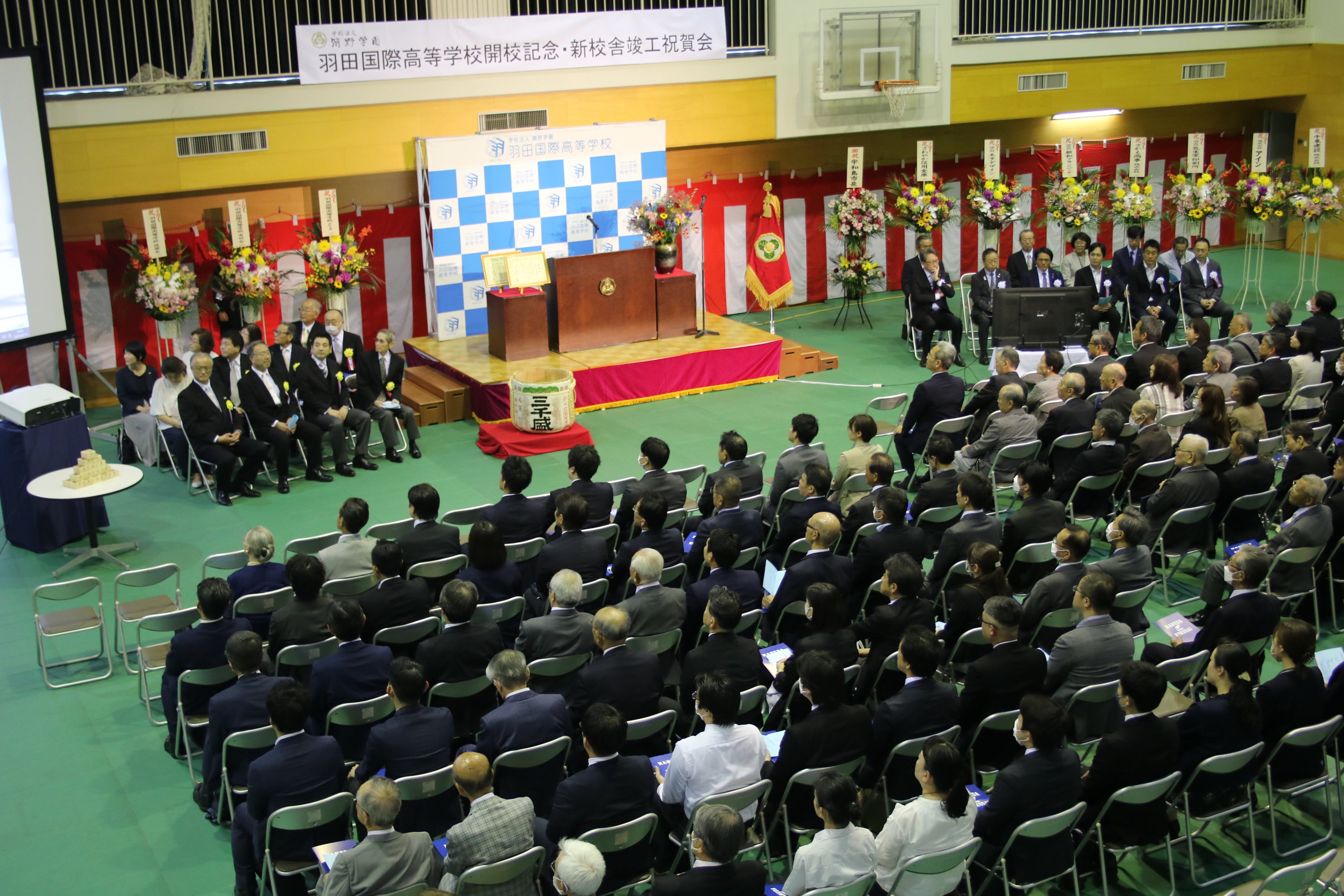 令和6年6月15日(土)には、日頃より本校をお支え頂いている議会の先生方、行政関係、地域の皆さま、協力企業の皆さま等、約200名を本校にお招きし、「羽田国際高等学校開校記念・新校舎竣工祝賀会」を挙行いたしました。