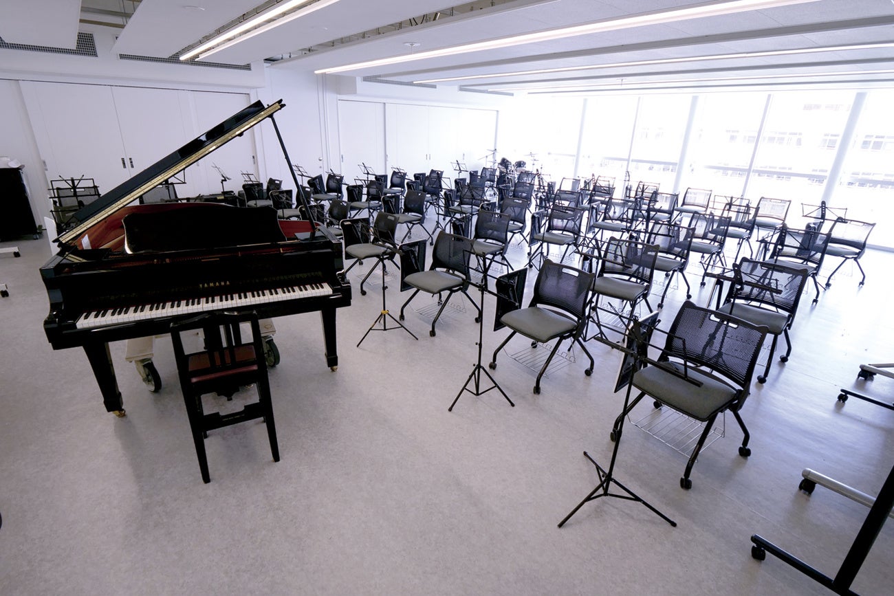 歌う、踊る、合奏するといった防音設備を備えたステージです。音楽の授業や、吹奏楽部の活動などで多く利用されています。