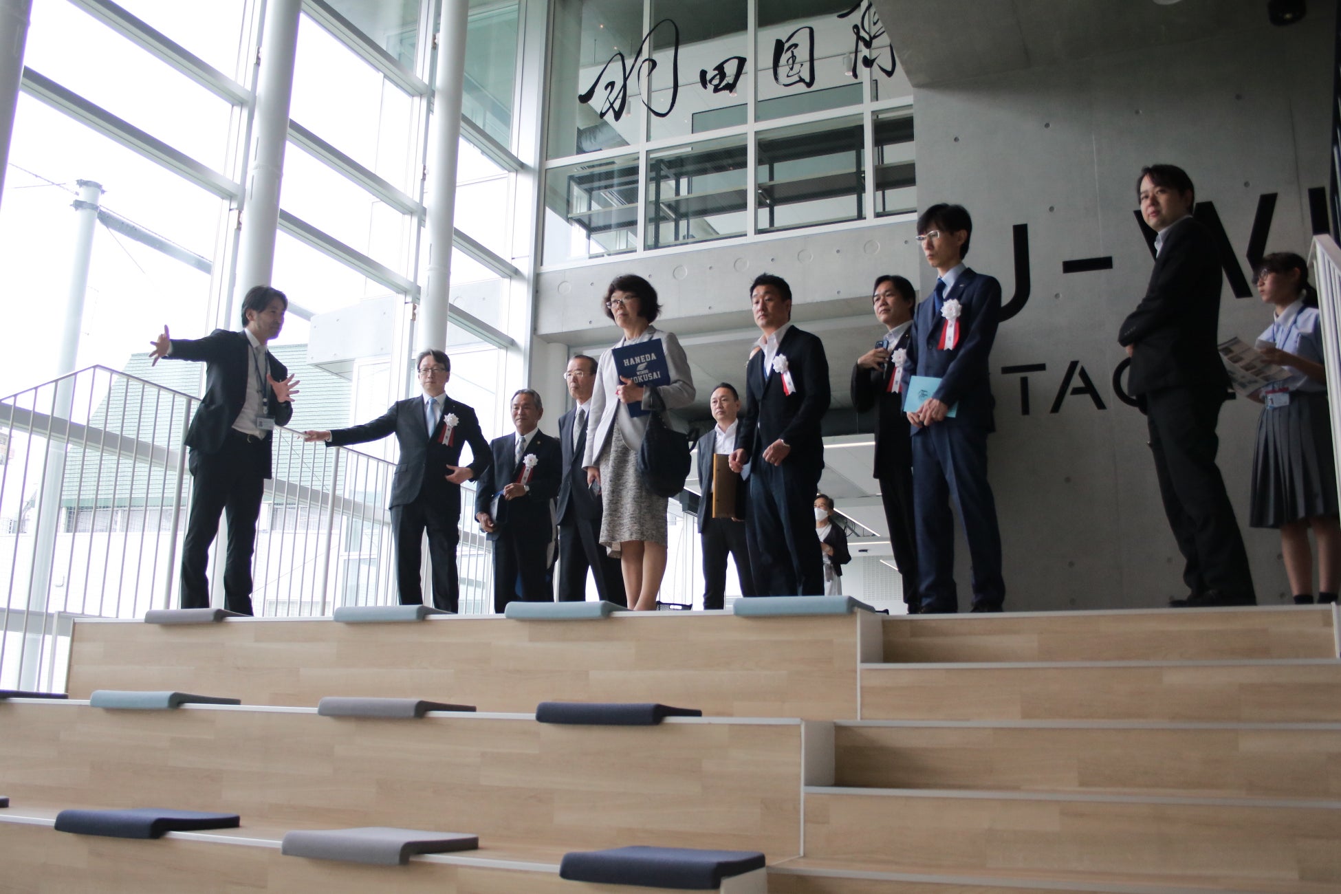 最後に、羽田国際高等学校長の簡野裕一郎がご挨拶申し上げ、地域や学校関係者の皆様に対して、今後益々のご支援・ご協力をお願いすると共に、土橋由希子副教頭・兼子正暢主幹教諭による羽田国際高等学校の学校紹介に加え、本校生徒による新校舎の見学ツアーを実施、お客様に羽田国際の教育内容と新校舎の魅力をお伝えました。