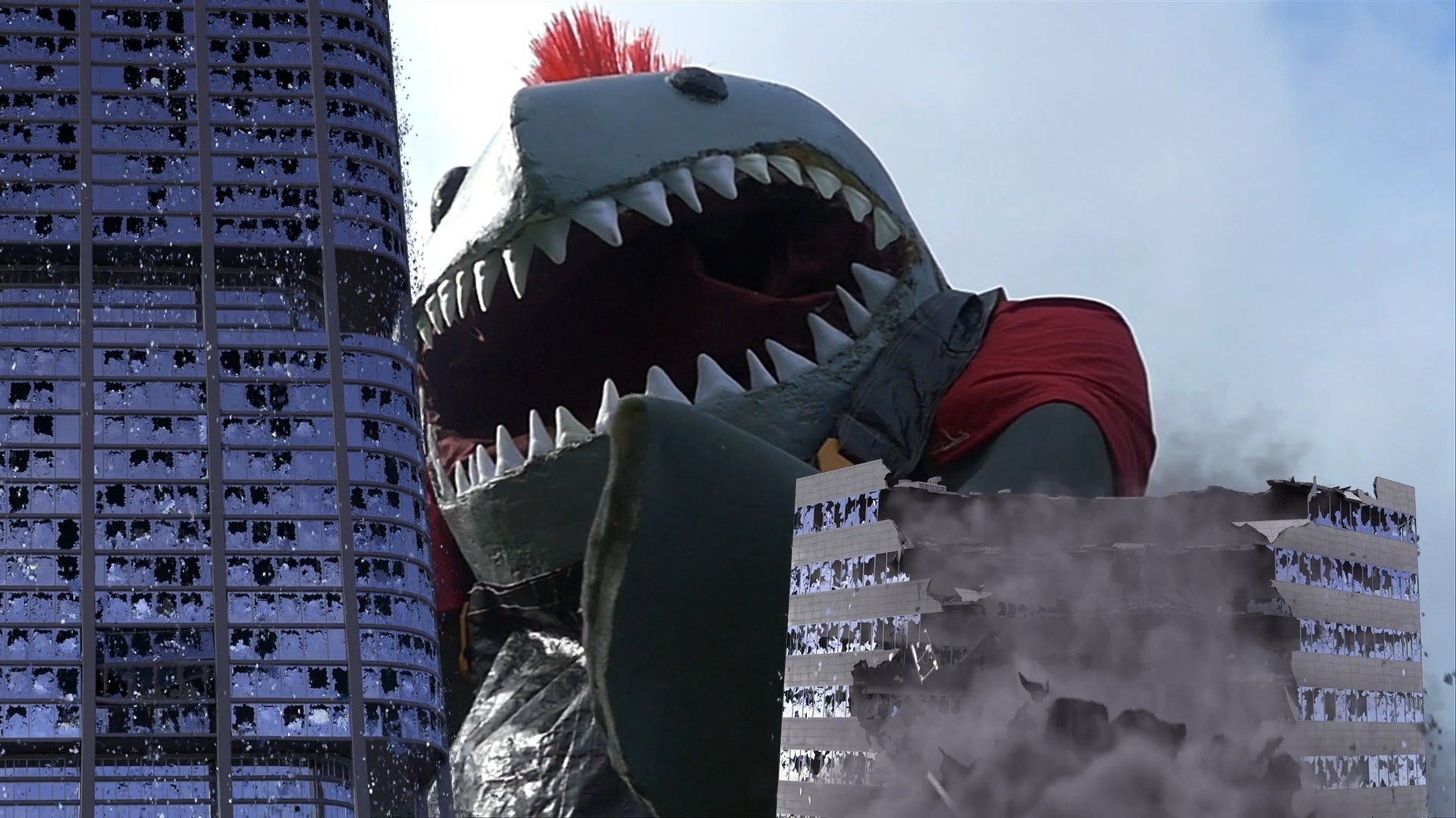 やがて怪獣サメ男は突如ビルよりも大きく巨大化。町を破壊しながら進み始めライブの開催も危ぶまれる状況に。軍も対策を講じるが、怪獣サメ男の進撃は止められない。果たしてどこに向かうのか?ライブは開催できるのか?