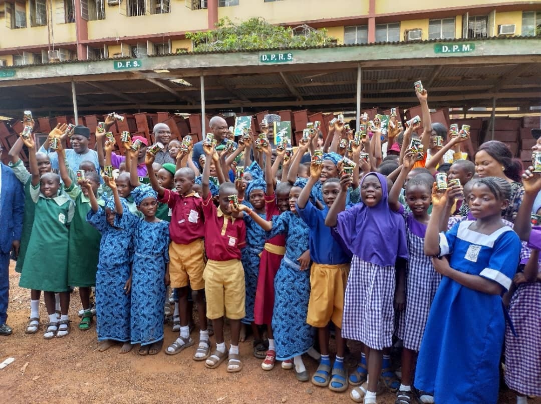 ナイジェリアで12月6日開催された寄贈式典の様子は、現地の新聞やローカルテレビのニュースで取り上げられて注目を集めました。式典には、中東川商フーズの村田 光太郎課長を始め、教育省長官のFemi Majekodunmi氏を含む関係者約30人、学校の教師、生徒約125人、メディア関係者約15人が参加。Femi Majekodunmi氏は来賓挨拶で、寄贈への感謝の言葉を述べると共に、寄贈品による生徒たちの成長および学習効果の向上への期待と喜びを語りました。