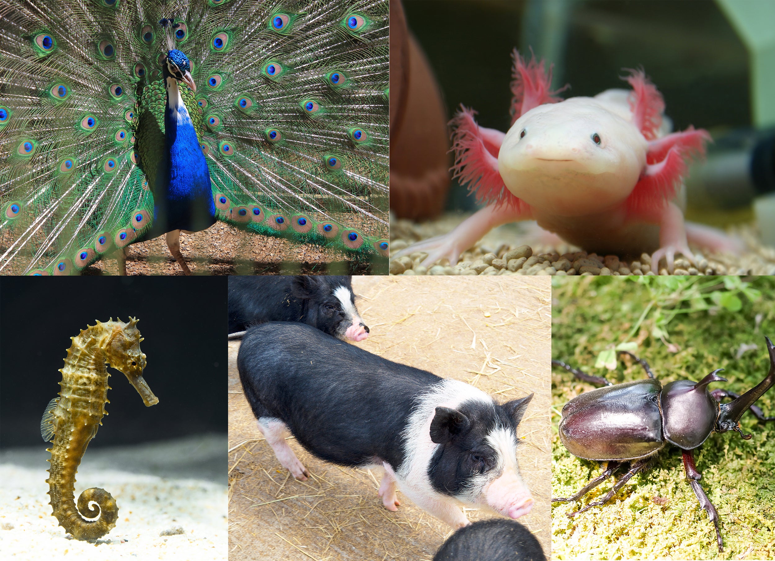 ライオン・カブトムシ・クワガタ・ブタ・チンチラ・クジャク・ハト・リス・ハリネズミ・タツノオトシゴ・コイ・サソリ・グッピー・ウーパールーパー・タヌキ・ミーアキャットの計16種類を何が”ざんねん”なのか説明を交えて展示予定。