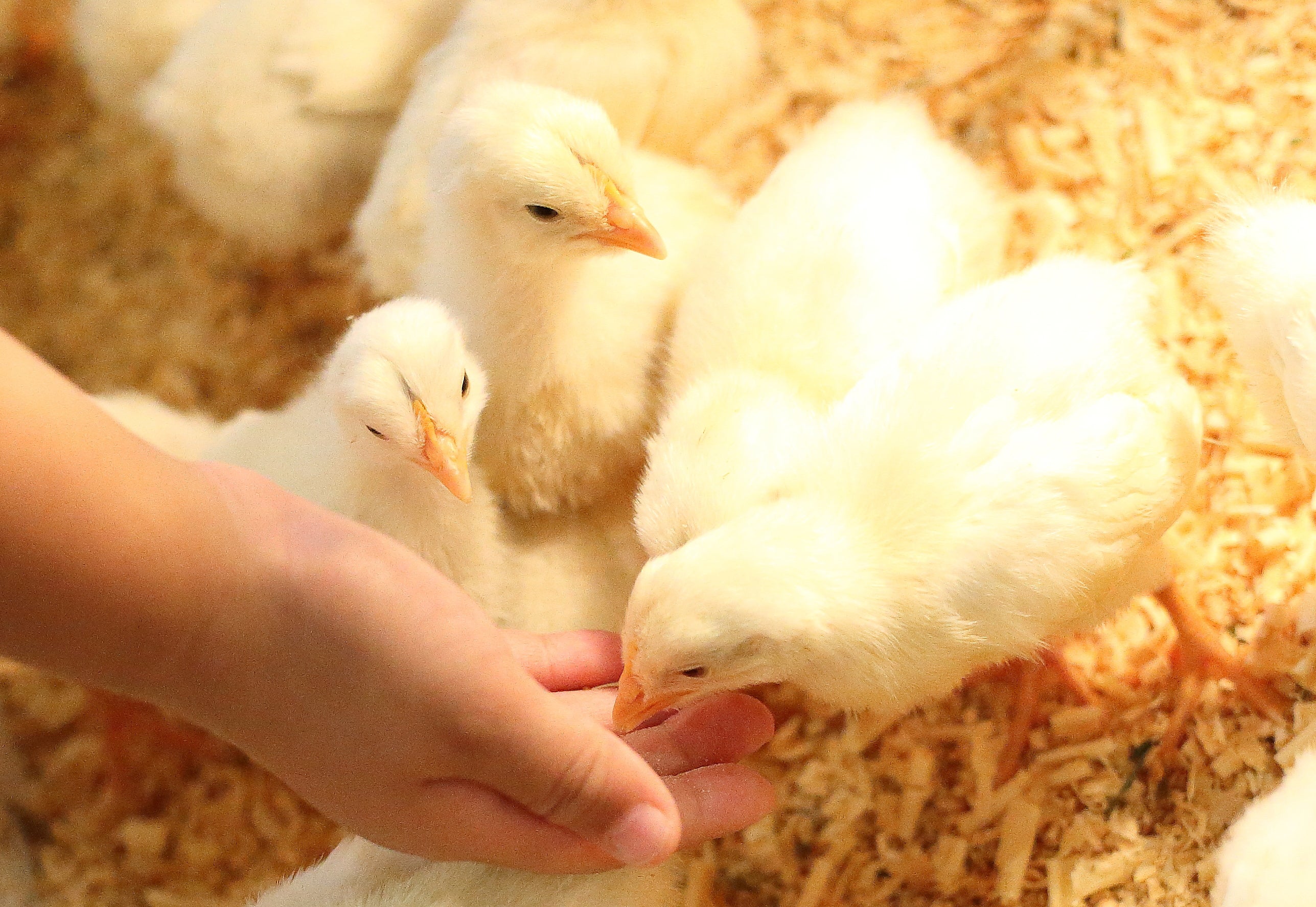 かわいいひよこと触れ合えるコーナーや本物の古代ザメの歯の化石を発掘する体験(税込500円)も楽しめます。