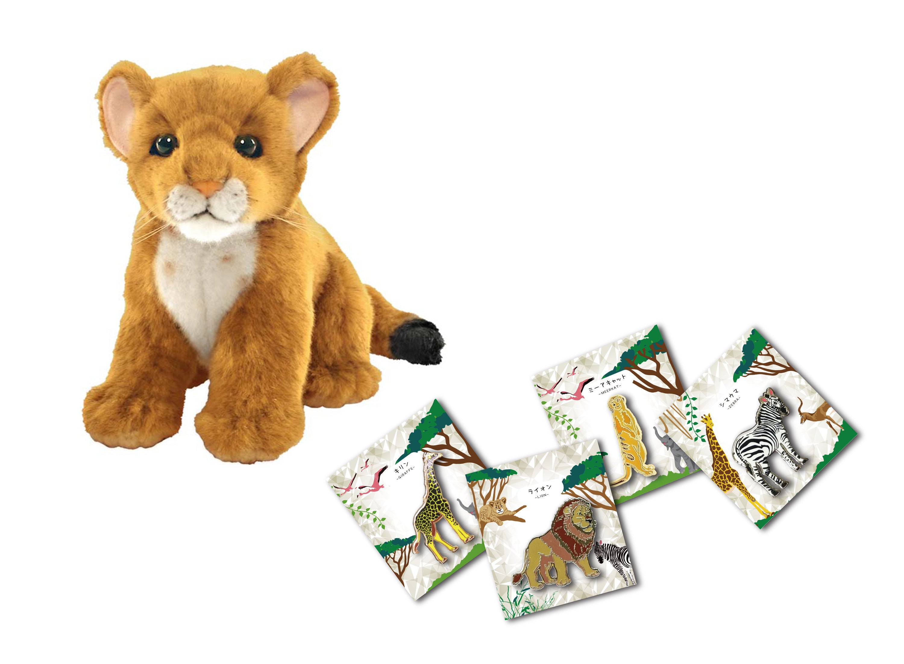 生き物のぬいぐるみなどのグッズや「ざんねんないきもの事典」シリーズの本、昆虫などの図鑑などを取り扱います。