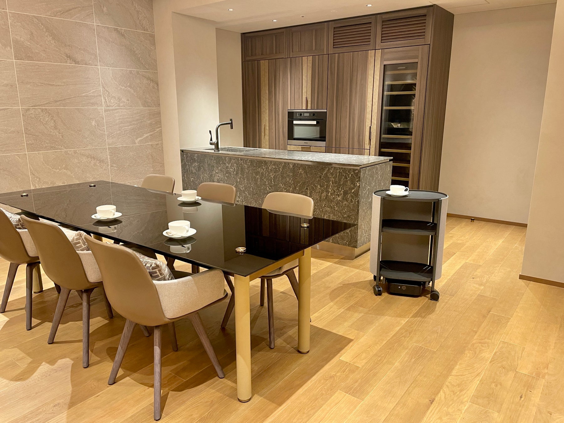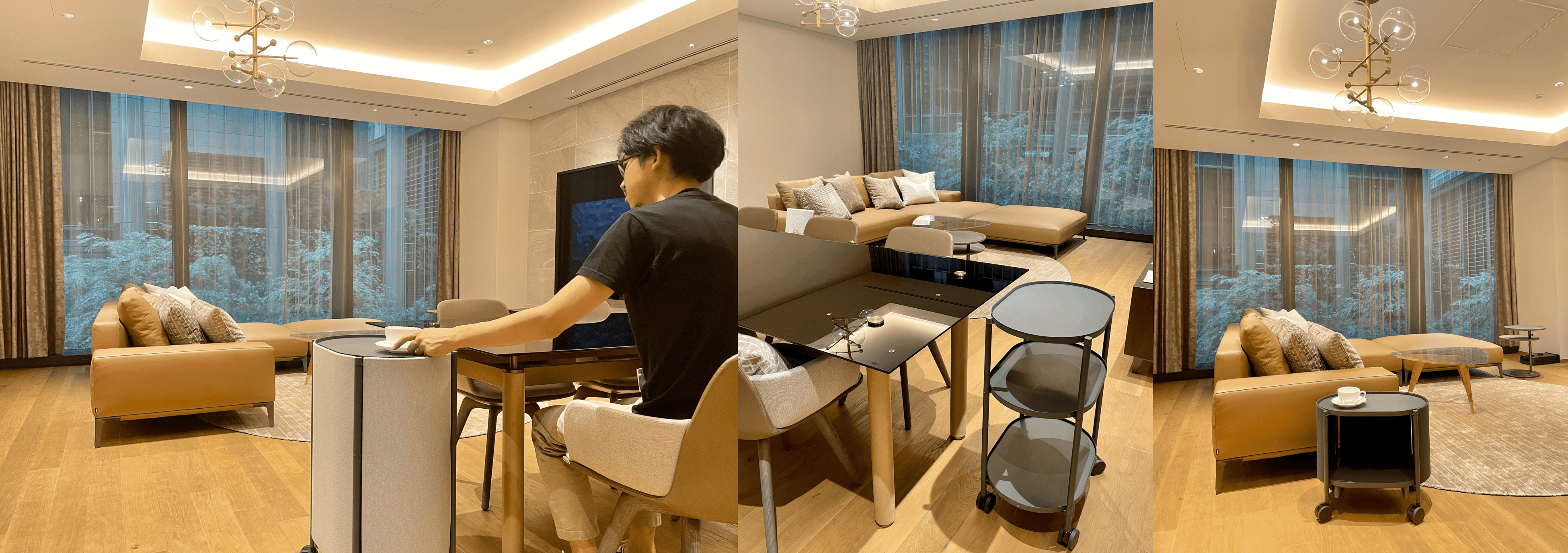 そのような声を受けて、カチャカの魅力をより多くの方にご体験いただけるよう、PFRoboticsは「OCA TOKYO」の中のリビング、ダイニング、キッチンを備えた1室に「カチャカラウンジ 丸の内」をオープンしました。本ラウンジでは、「カチャカ」を使用した片付けや配膳、仕事用具などの運搬はもちろん、APIを利用した室内照明や自動開閉カーテンなどとの連動も体験可能です。今後は「カチャカラウンジ 丸の内」でのイベントなども開催していく予定です。