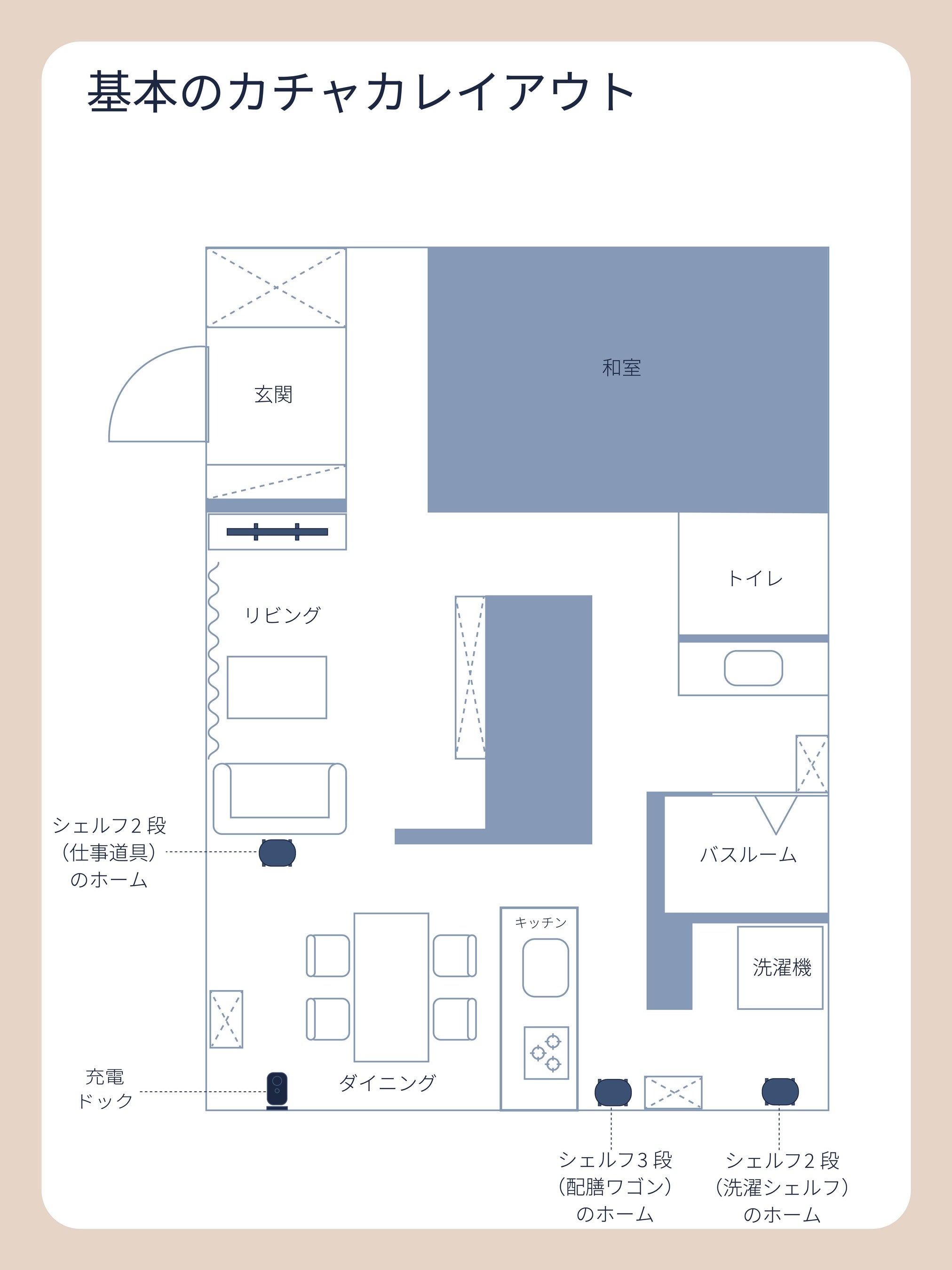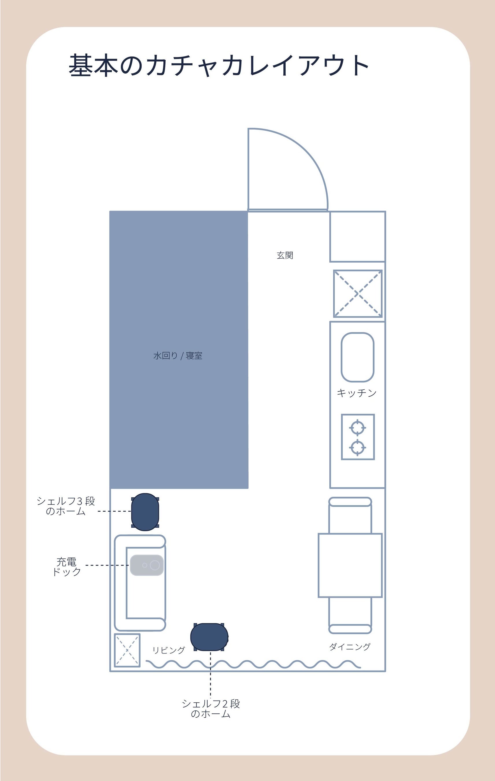 新しいものやガジェットが好きで、スマート家電も多数取り入れているKさん。購入の決め手は、きれい好きですっきりと片付いているのが理想の妻と、モノが手の届く範囲にある方が好きな自分のそれぞれの理想を叶えるためには、カチャカがぴったりだと思ったこと。