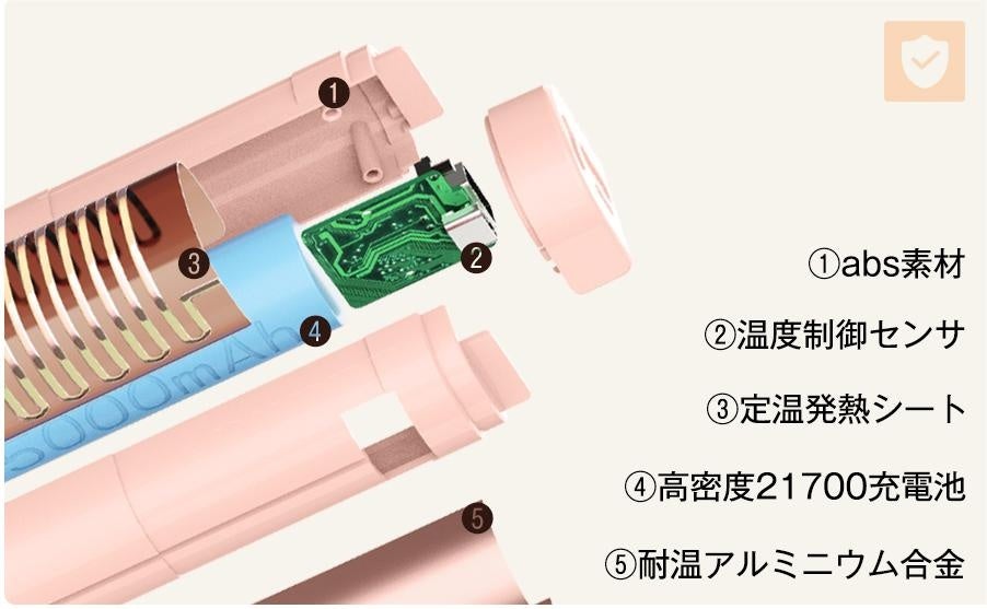 21700タイプのバッテリーを採用することで、同容量のバッテリーに必要な体積よりも20%効率の良い電池体積となり、軽量化と最小化を実現しました。それで、鞄やポケットに簡単に収納できるコンパクトなサイズで、子供・女性の片手でもしっかりと握れ、温かさを心地よく感じられます。