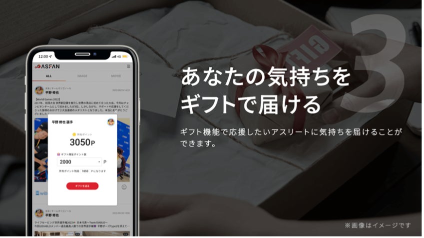 3. ギフト機能→アスリートを応援したい気持ちをギフト(ポイント)で送ることができます。アスリートはギフトを送ってくれたファンの名前を見ることができるためファンへの感謝はしっかりできる体制になっています。