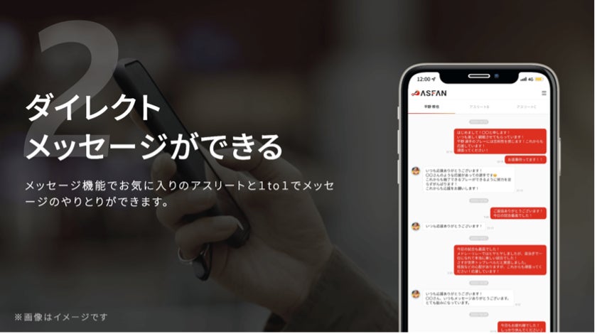 ASFANでは、選手のファン登録を月額980円ですることができ、登録者はここでしか見られないアスリートの写真や動画、アスリートから直接連絡が届くチャット機能、ギフト機能やお仕事依頼機能など、ASFANだからこそ楽しめること、できることが盛り沢山!また、皆さまから頂いた月額費用のうち約8割はアスリートに還元しており、ファンの応援をしっかりアスリートにお届けします。
