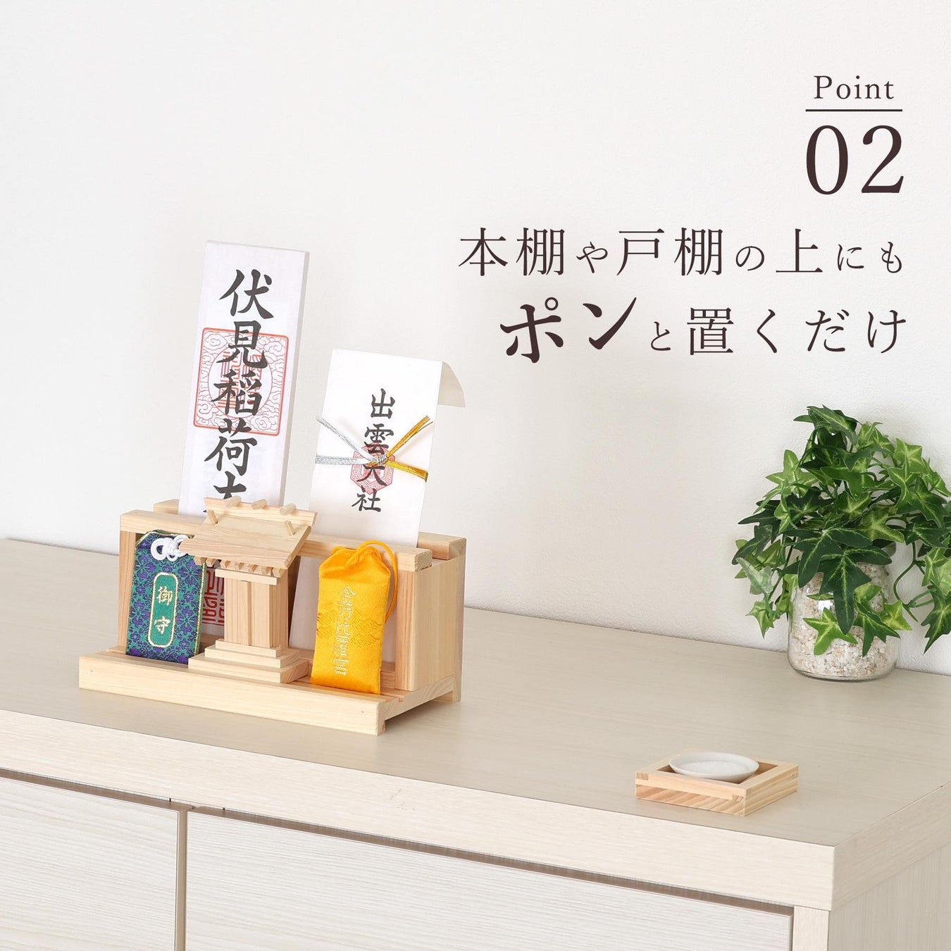 軽量設計で取り付けやすく、引っ越しや模様替えの際も移動が簡単。気軽にお札やお守りを飾り、眺めて心の休まるひと時を、毎日の暮らしに取り入れたい方に。
