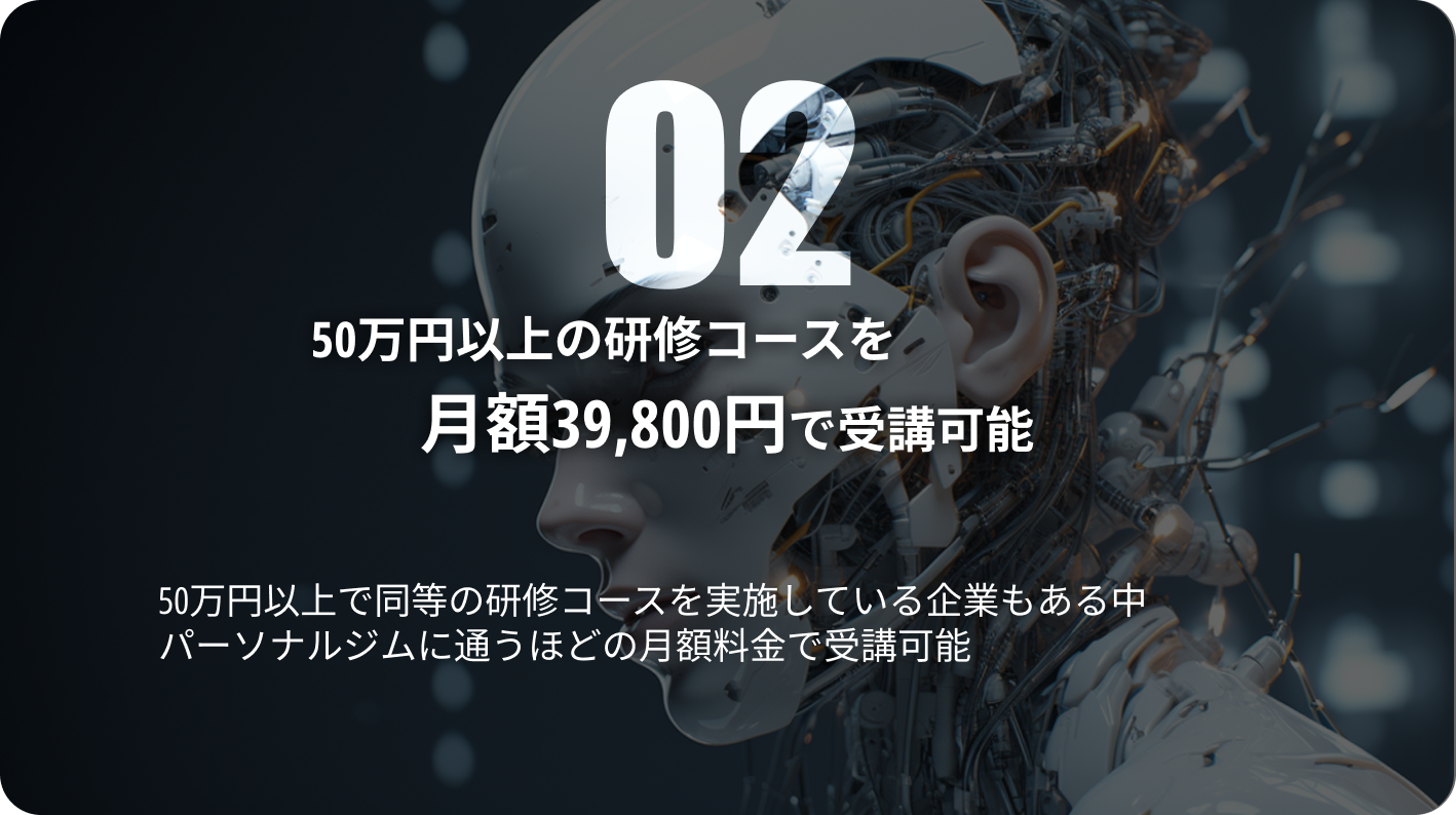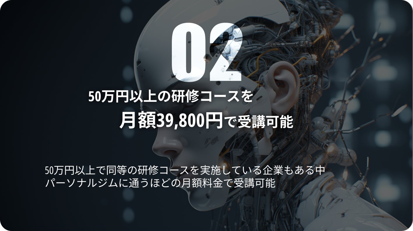2. 50万円以上の研修で行う内容を月額39,800円で受講可能