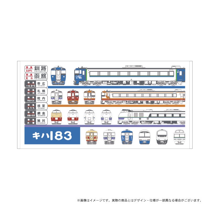 2023年3月に定期運行が終了した、キハ183系車両のバスタオルです。歴代のキハ183の顔が描かれています。