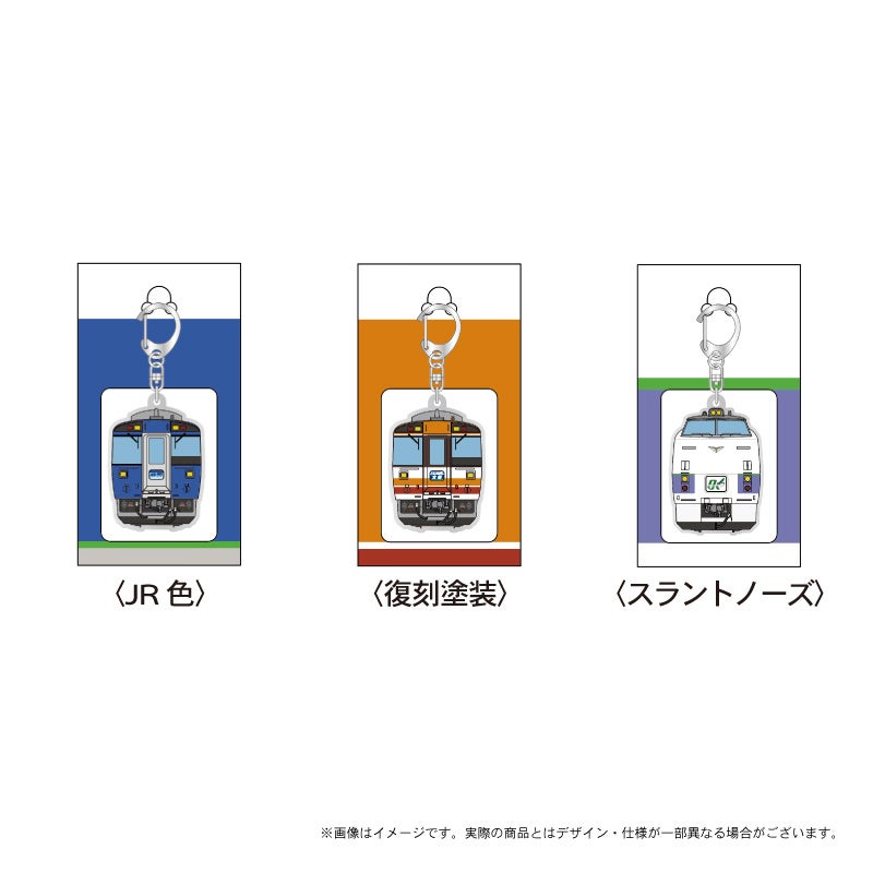 2023年3月に定期運行が終了した、キハ183系車両のメタルキーホルダーです。JR色、復刻塗装、スラントノーズの3種類。