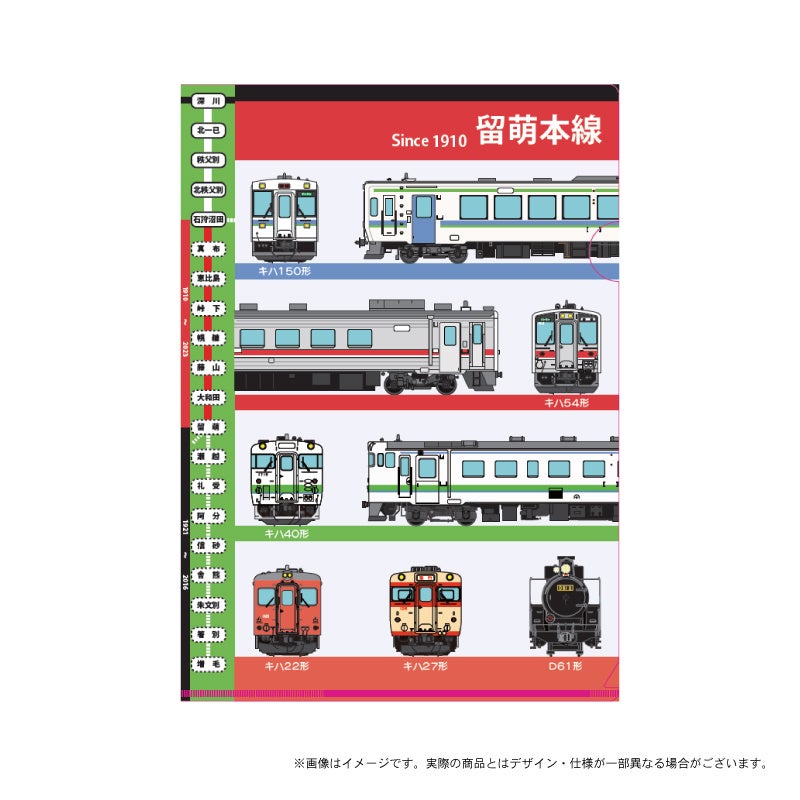 2023年4月に一部区間が廃線となった留萌本線のクリアファイルです。コレクションとしても、普段使いにもぴったりな定番商品です。