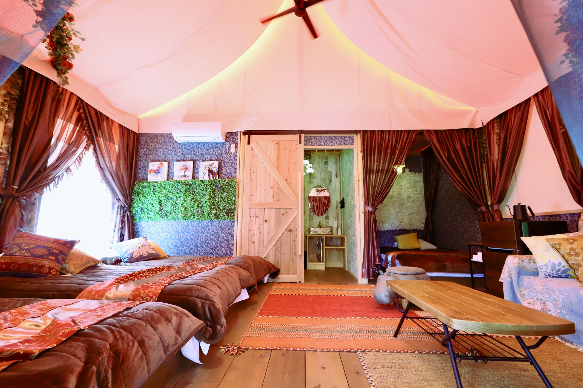オリジナルテント内は異国を感じる個性的なつくりになっています。