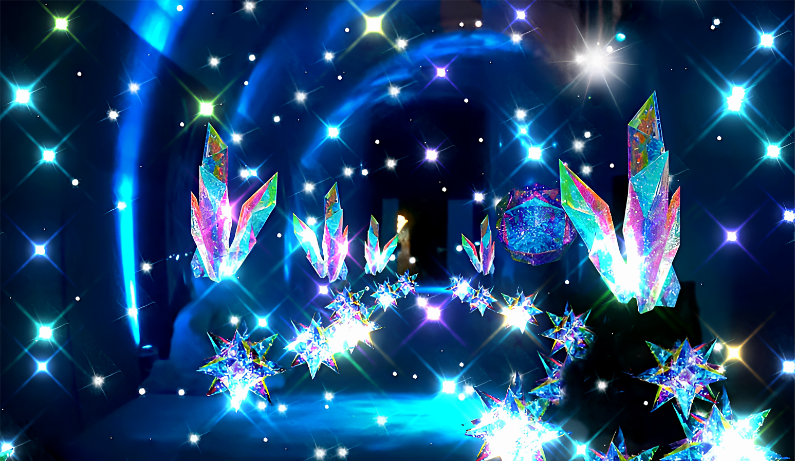 クリスタルケイブ:数々のクリスタルから放たれる光が神秘的な雰囲気を演出します。