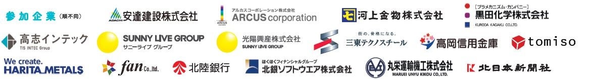 安達建設/アルカスコーポレーション/河上金物/黒田化学/高志インテック/サニーライブグループ/光陽興産/三東テクノスチール/高岡信用金庫/トミソー/ハリタ金属/Fan/北陸銀行/北銀ソフトウエア/丸栄運輸機工/北日本新聞社