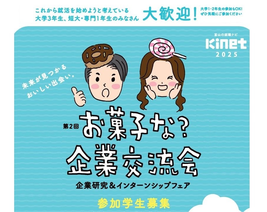 株式会社北日本新聞社(本社:富山市安住町)は9月1日、とやま自遊館(富山市湊入船町)で、インターンシップや企業研究を目的としてたイベント「お菓子な?企業交流会」を開催します。