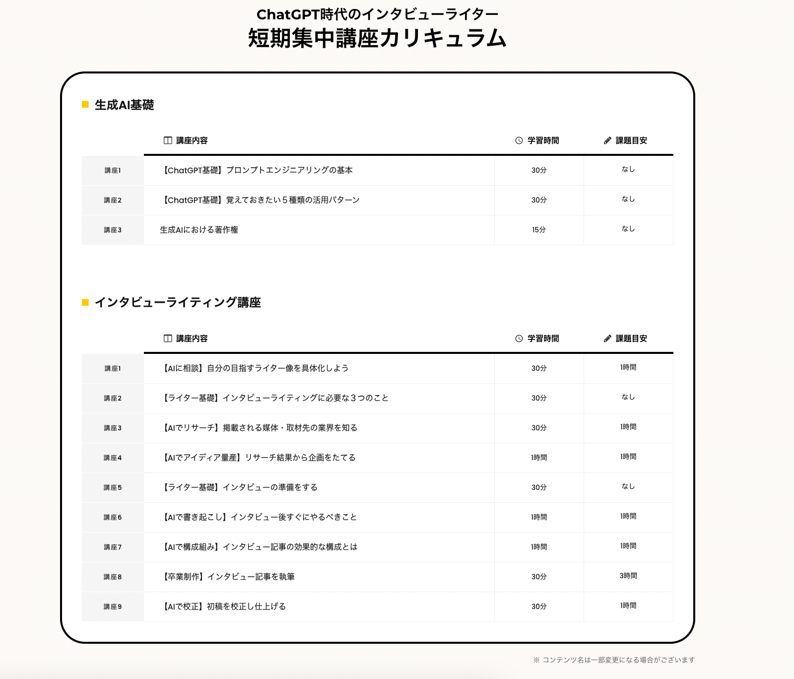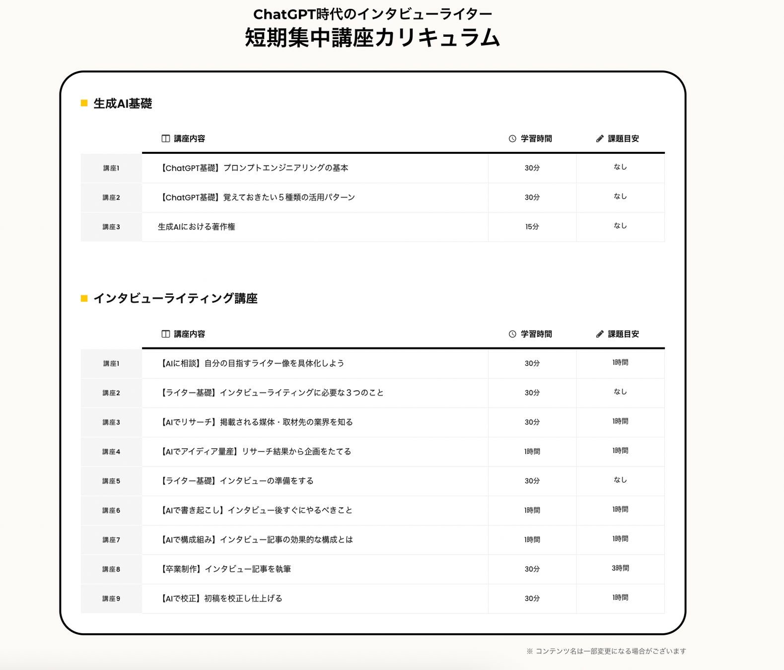 ChatGPTをはじめとする生成AIを味方にし、差をつけるための取材ライティングスキルが最短2ヶ月で学べる