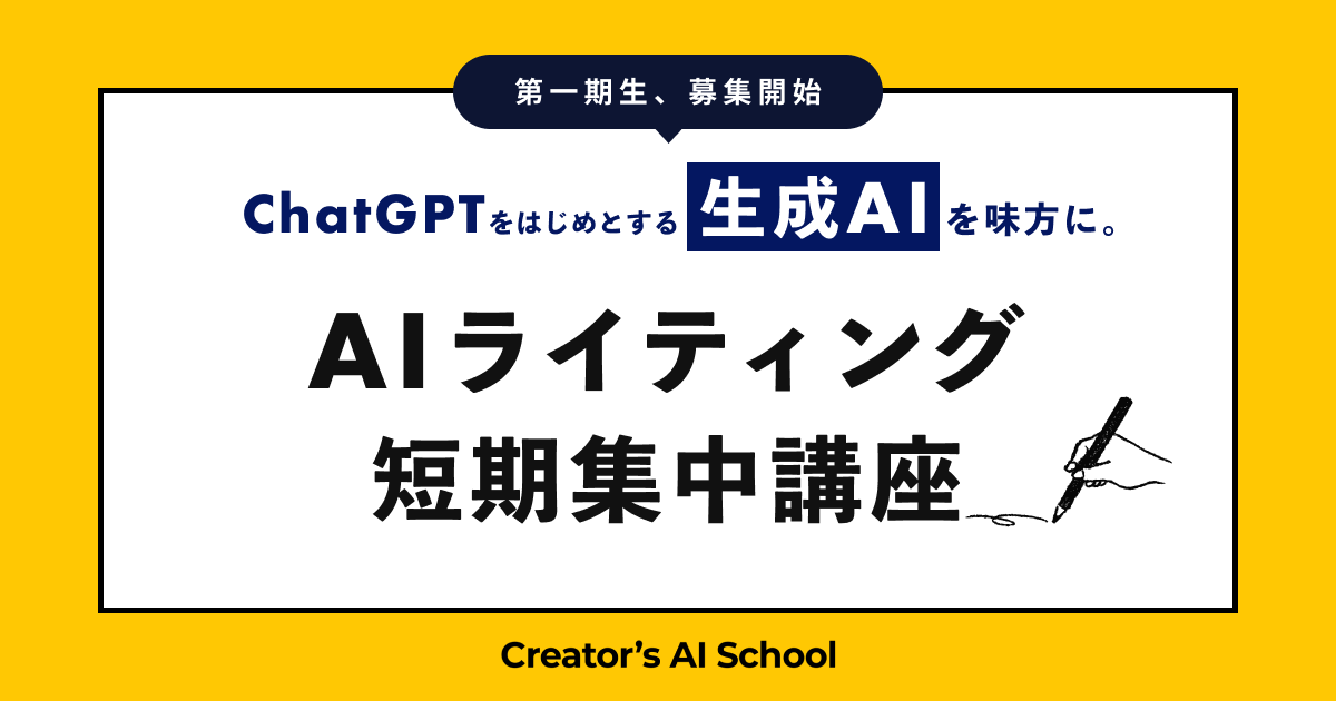 日本初・最先端の生成AIを学ぶクリエイター向けオンラインスクール「Creator’s AI School」が、「AIライティング短期集中講座」第1期生の募集を開始。