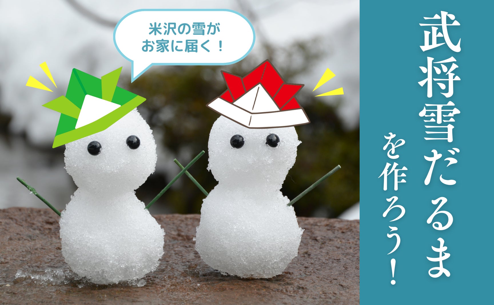 概要:地域を代表する武将である直江兼続を雪だるまで作れるセット。米沢の雪と一緒に、折り紙兜、雪だるま用の発泡スチロールが届きます。