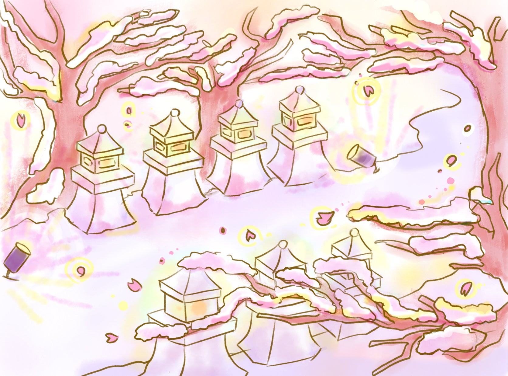 ライトアップイメージ図。クラウドファンディングのご支援により、雪景色が桜色に染まる予定です!
